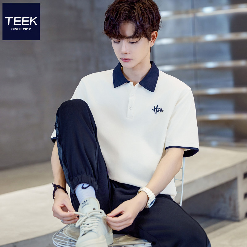 TEEK夏季速干Polo衫短袖T恤男 撞色翻领青少年保罗有领半袖上衣服