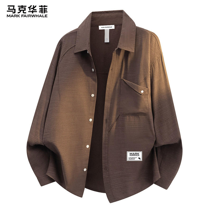 马克华菲大码长袖衬衫男款春季2026新款衬衣外套男士美式潮牌上衣