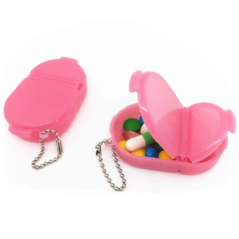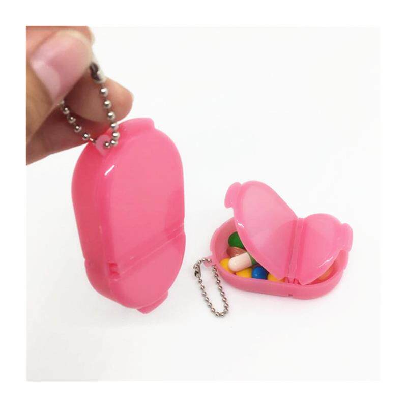 适配迷你药盒 小收纳盒 两格带链便携式创意卡通小塑料盒