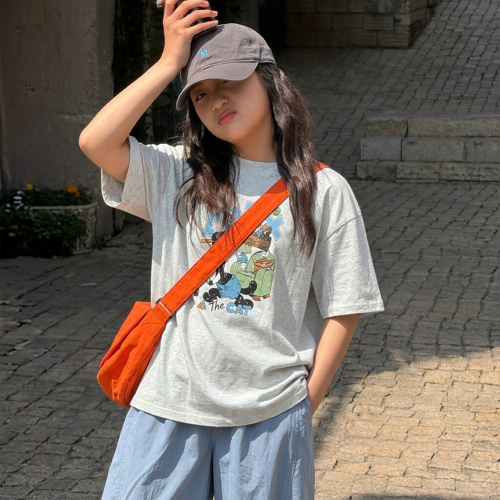 女童短袖T恤2026夏新款美式复古T恤青少年韩版百搭宽松休闲上衣