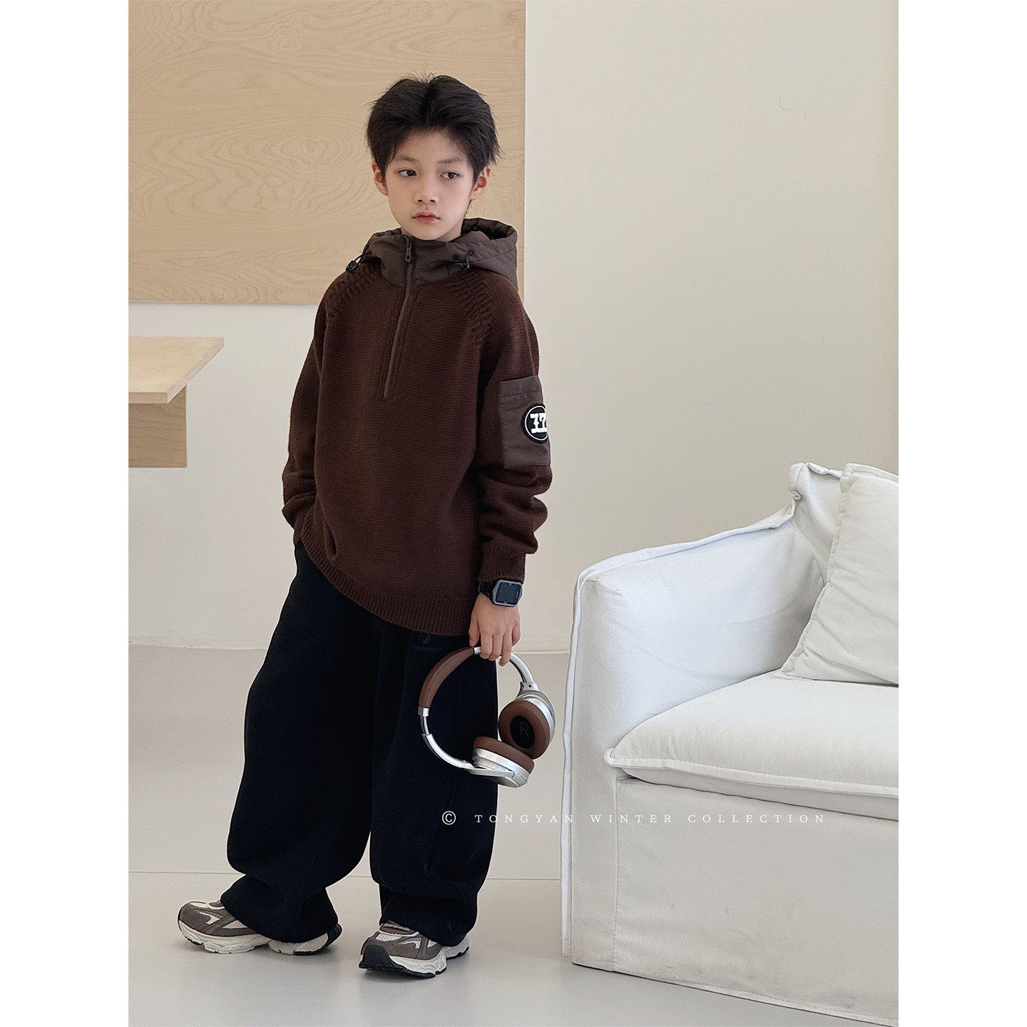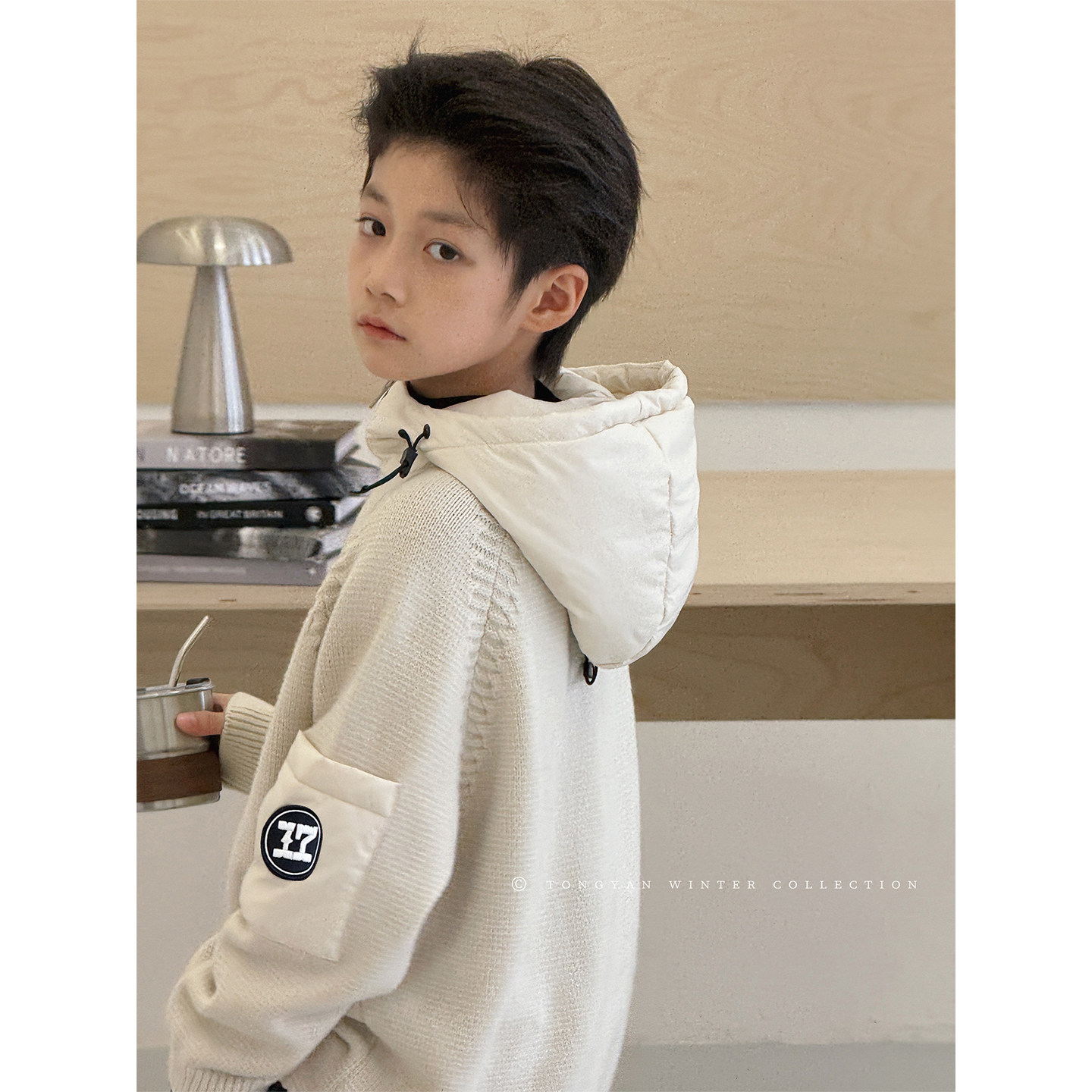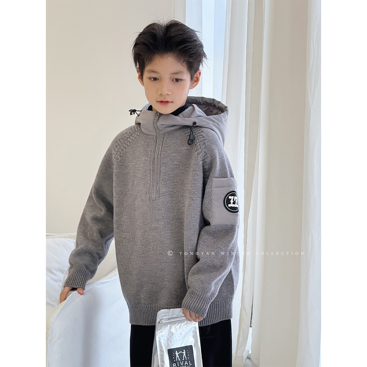 男童卫衣加绒2025冬装新款中大童连帽毛衣宝宝针织上衣儿童外套厚
