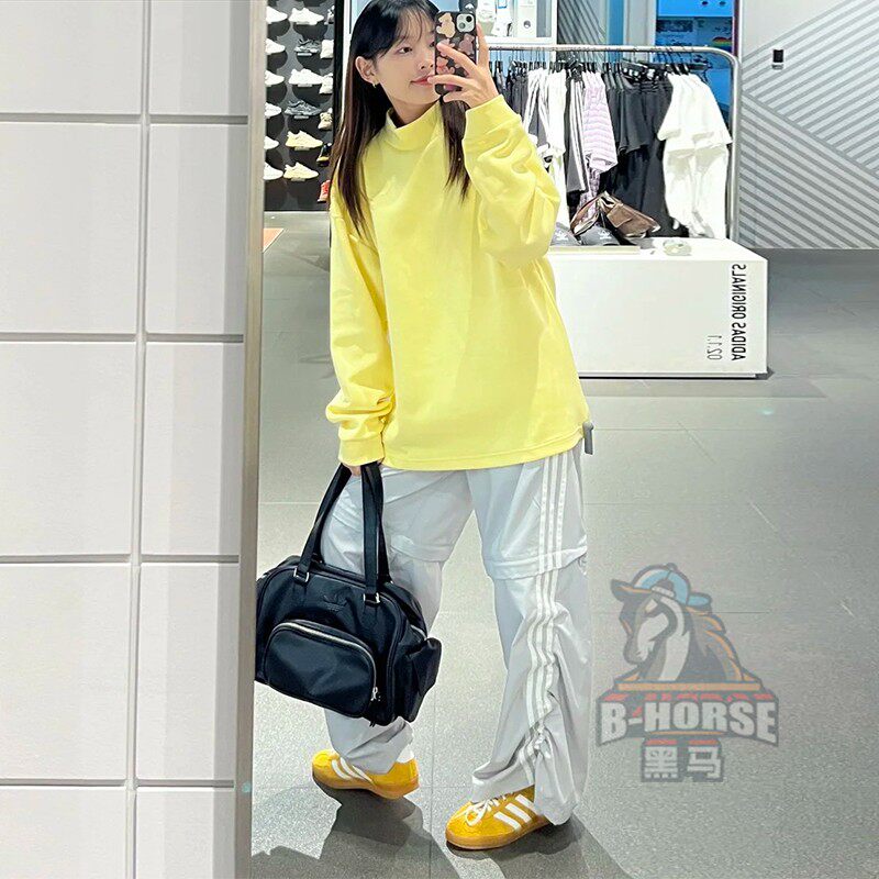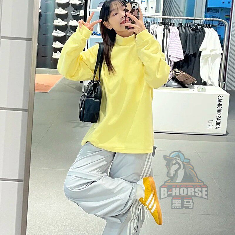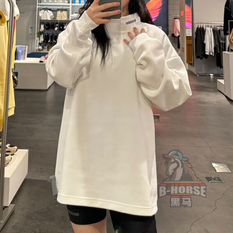 Adidas阿迪达斯三叶草秋冬新款男女情侣白色卫衣半高领休闲套头衫