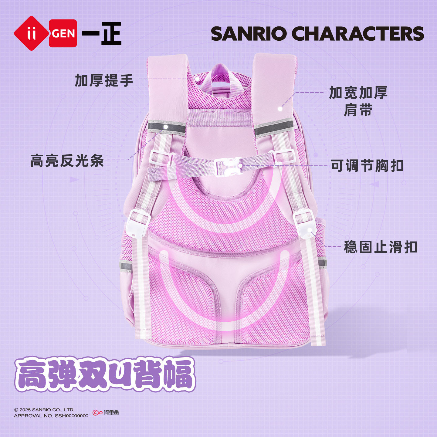 iiGEN一正学生书包三丽鸥家族系列减负护脊书包 儿童超轻双肩书包女孩小学生专用一到六年级大容量25新款背包