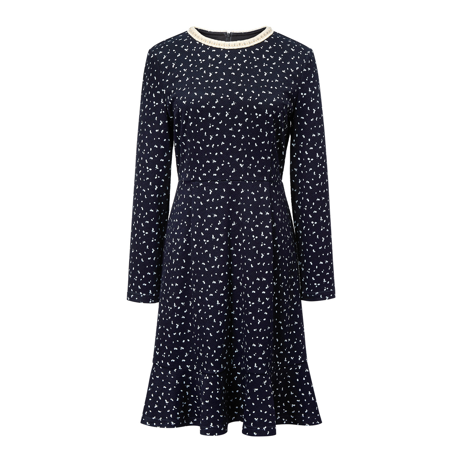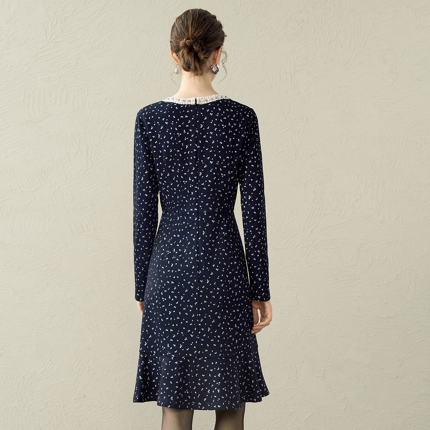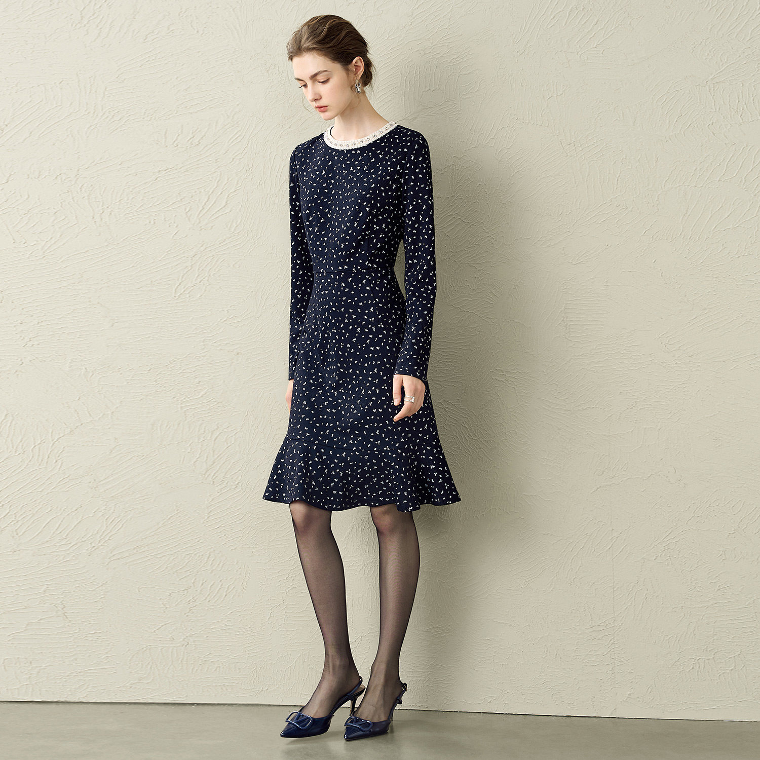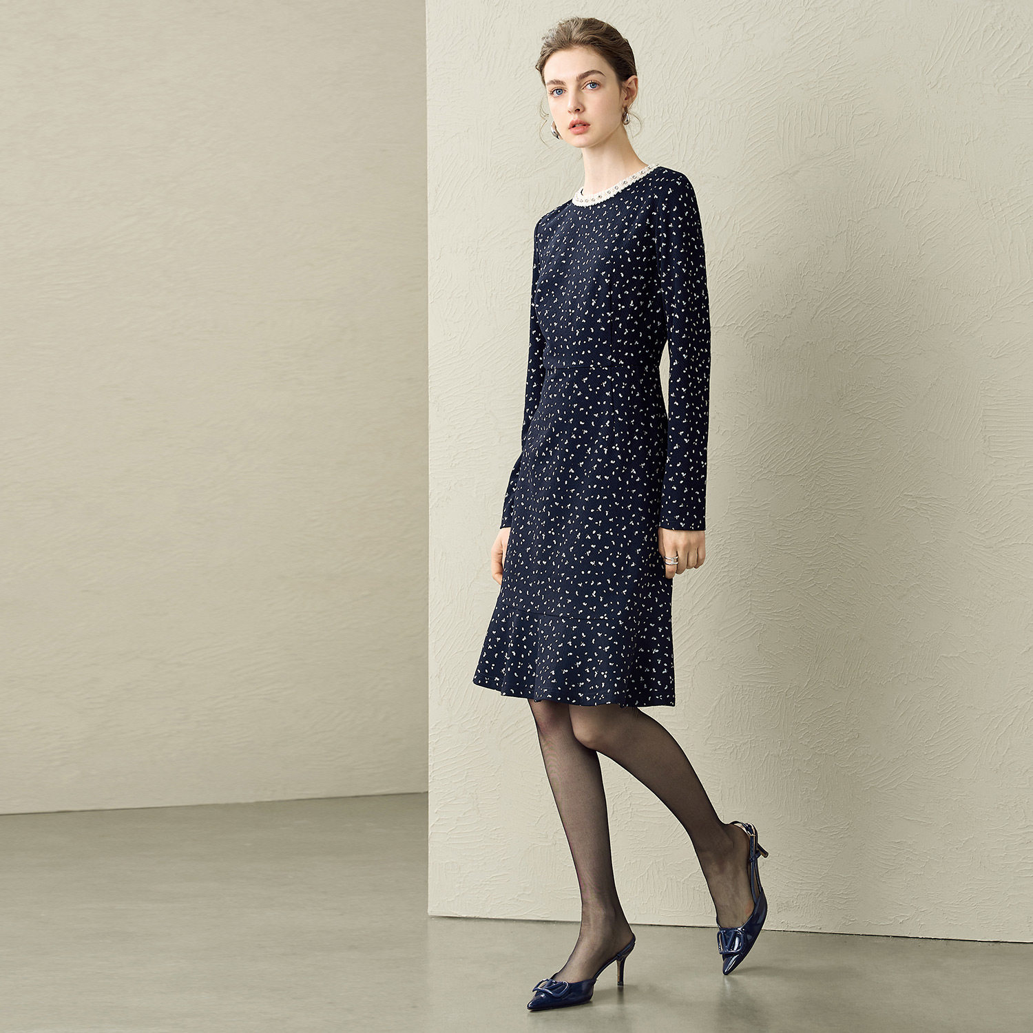 颜域碎花收腰长袖连衣裙女2025秋冬装新款轻熟风优雅减龄气质短裙