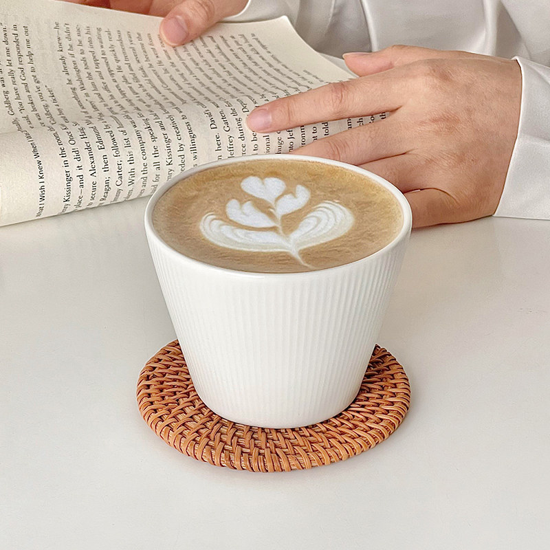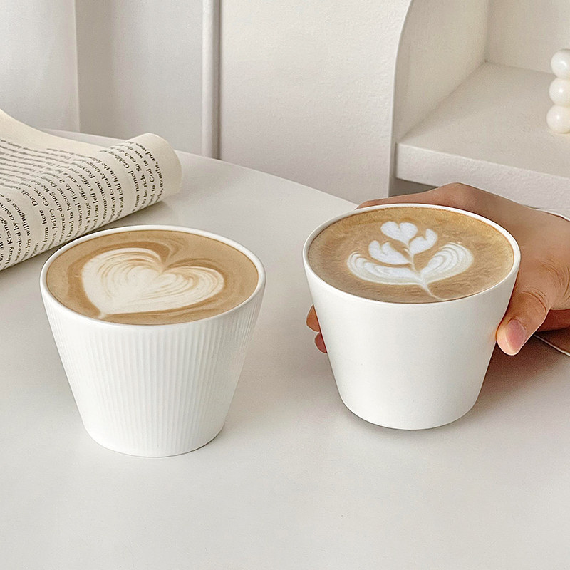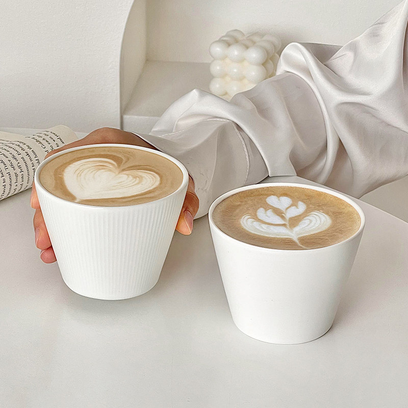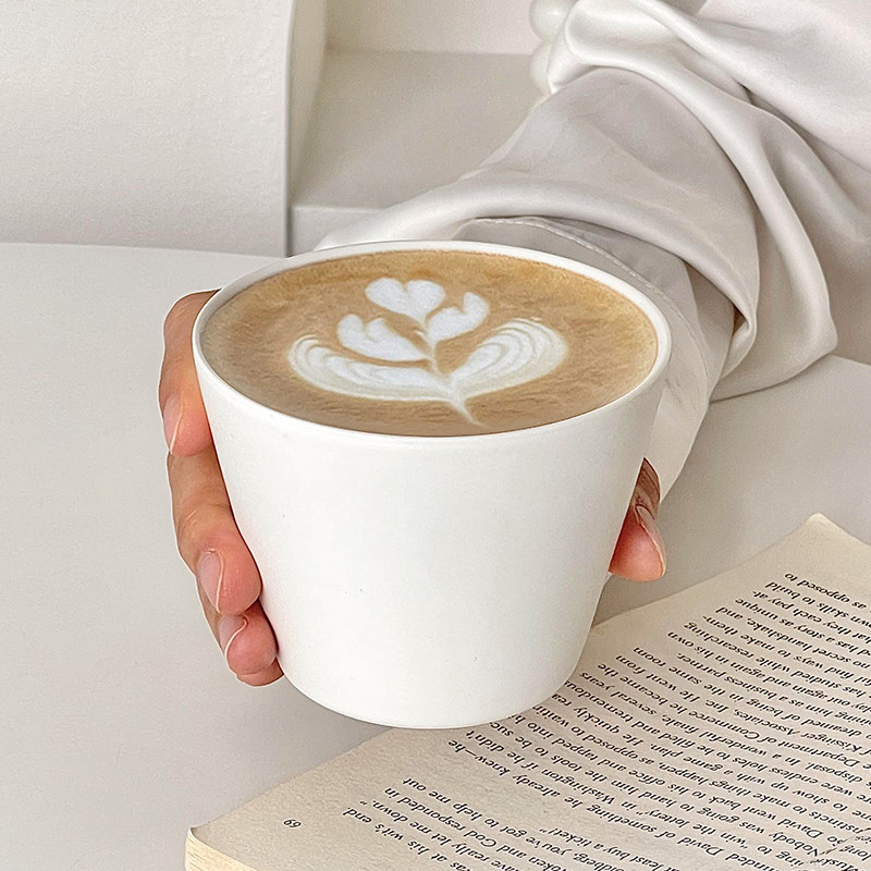 简约白色陶瓷咖啡杯家用宽口猪口杯手握杯品鉴拉花杯澳白拿铁杯子