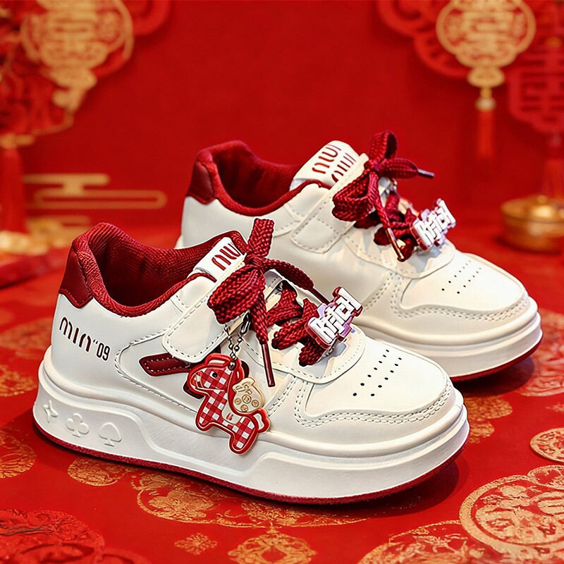 官网C&K红色板鞋女童鞋2026新款春季儿童运动小白鞋女孩好看软底