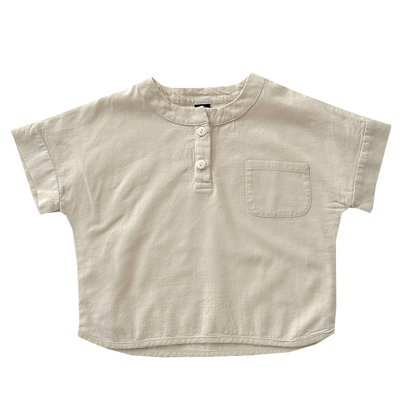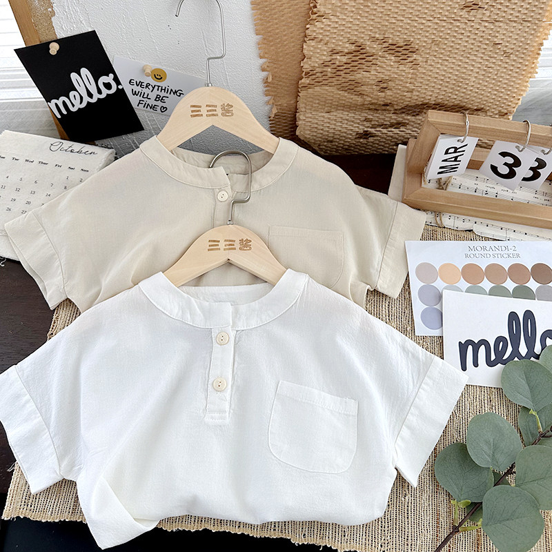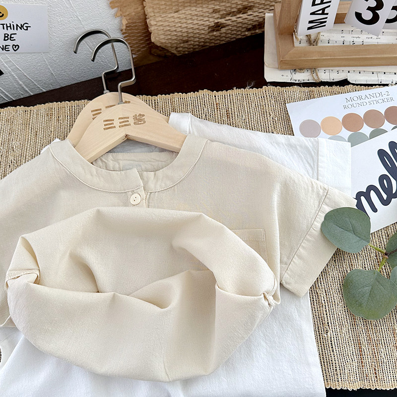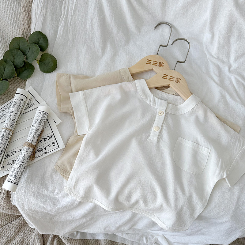 儿童棉麻短袖衬衣男童日系薄款上衣女童夏季白色衬衫宝宝中式夏装