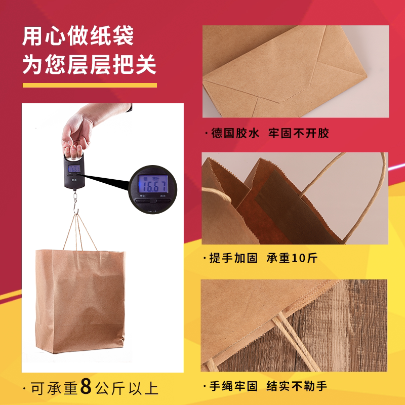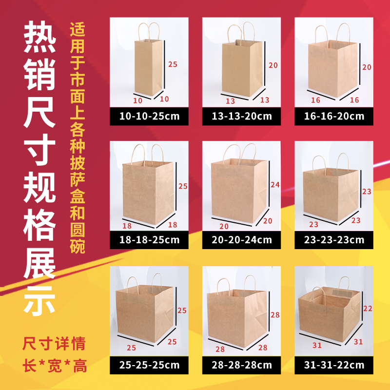 定制手提袋牛皮纸袋餐饮商用外卖打包袋订做披萨食品袋包装加厚大