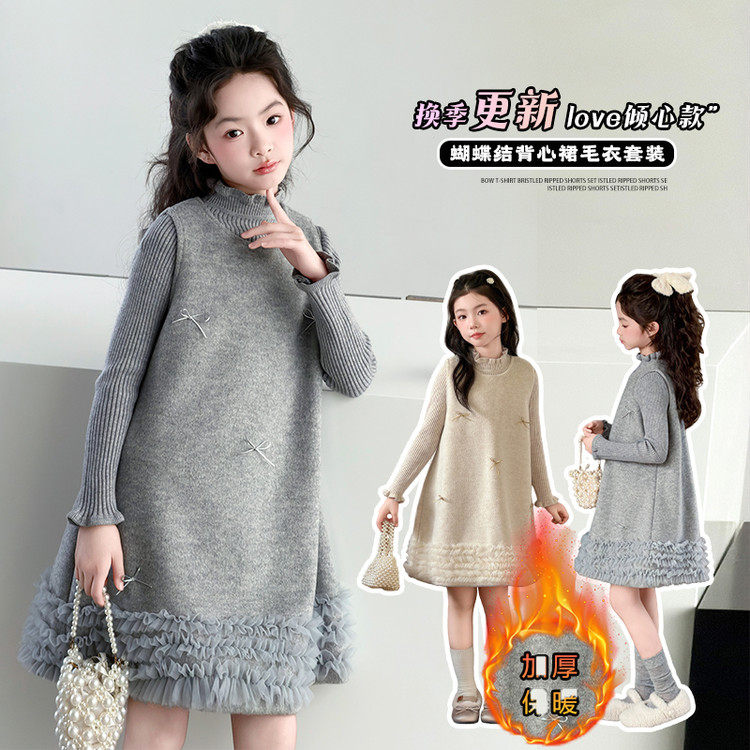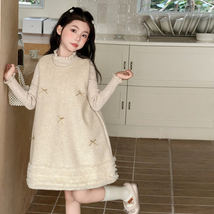 女童秋冬拜年服新款儿童加绒小香风背心连衣裙毛呢中大童年服裙子