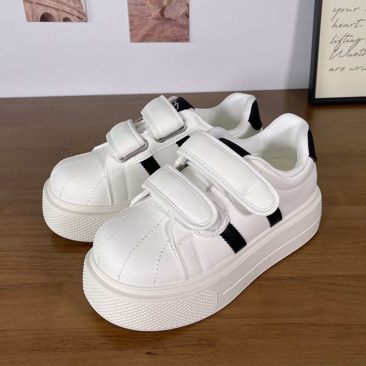 女鞋ins潮流新款魔术贴厚底增高小白鞋女学生百搭拼色休闲板鞋子