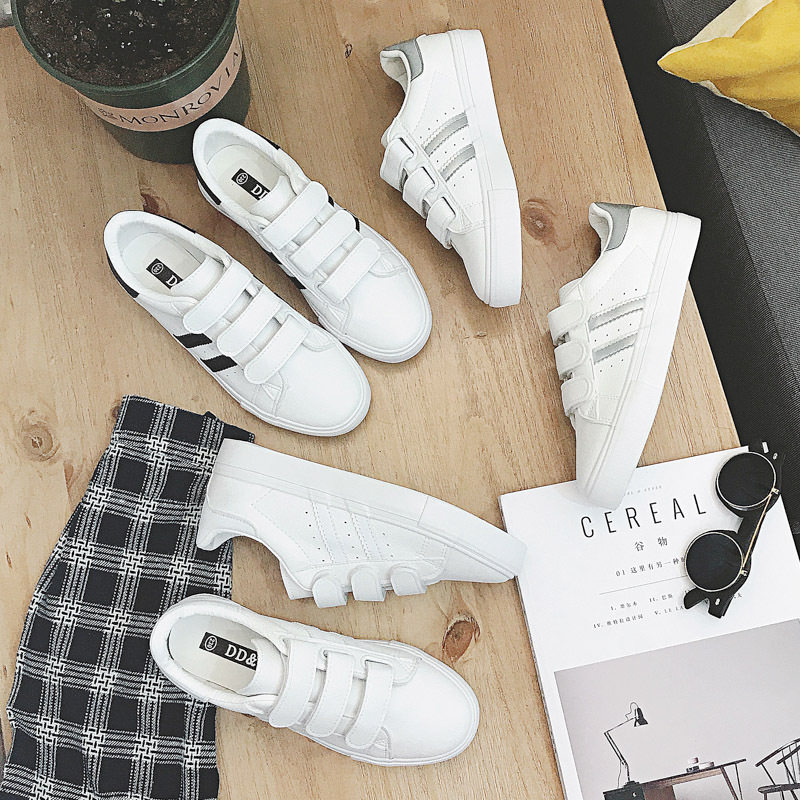 香港潮牌春夏新款小白鞋女鞋子透气板鞋百搭休闲网红魔术贴学生
