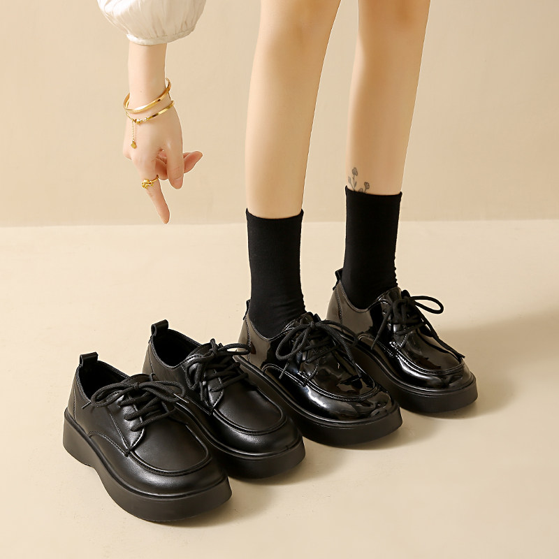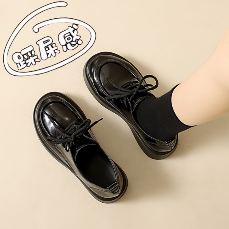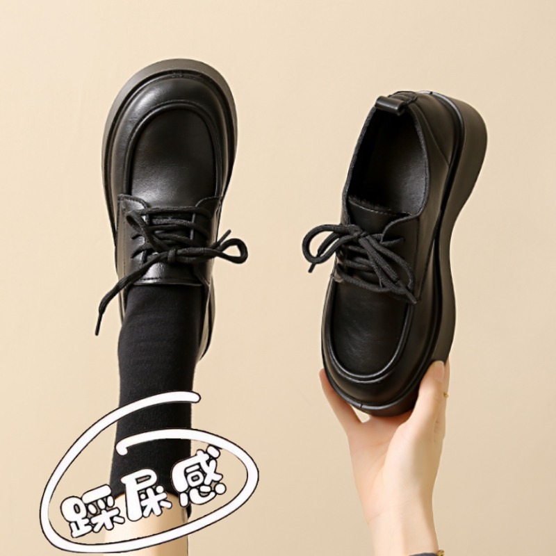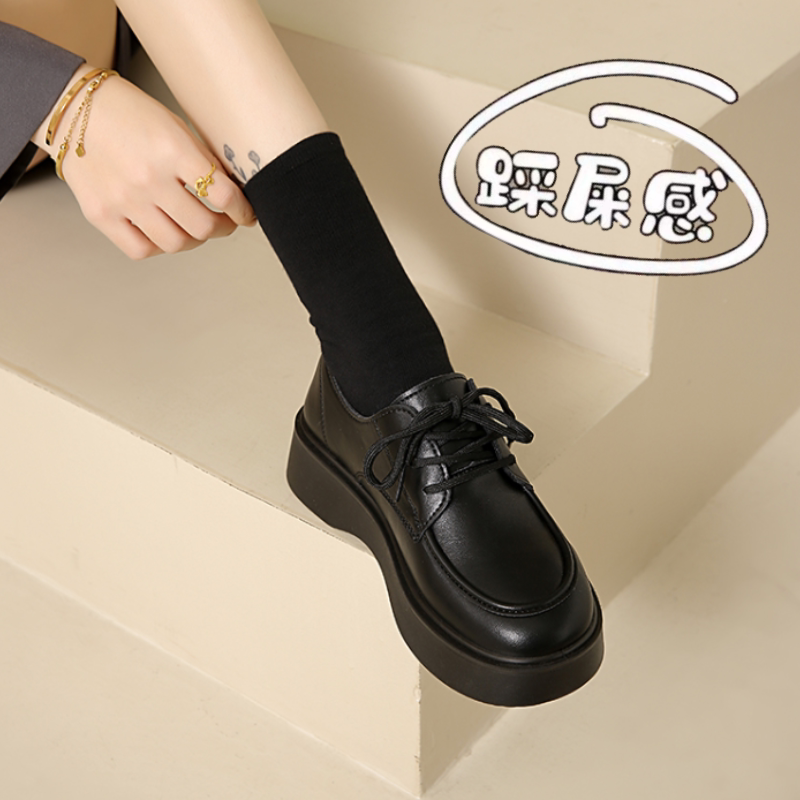 英伦风黑色小皮鞋女2026春季新款真皮厚底增高工作鞋配裙子乐福鞋