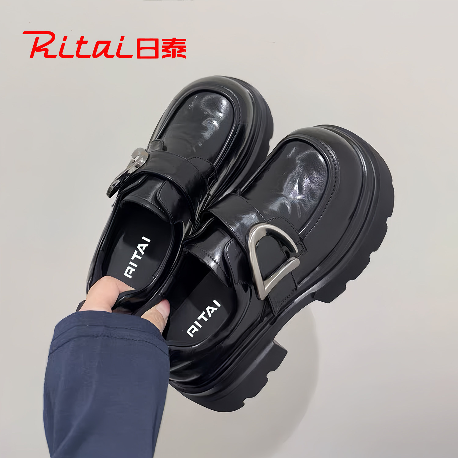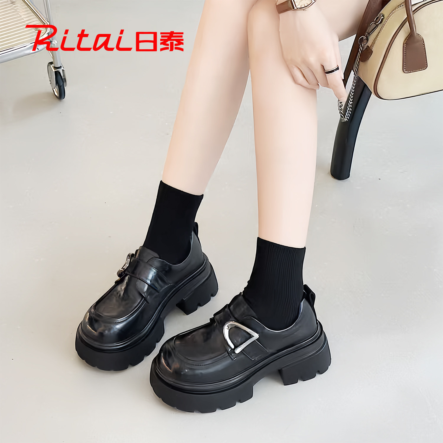 日泰厚底乐福鞋女2026春季新款学院风复古配裙子增高真皮小皮鞋女