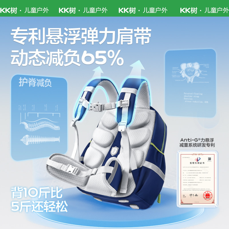KK树小学生书包悬浮减负男生一二三四五六年级女孩轻便护脊儿童双肩大容量书袋轻便可爱多隔层背包带反光条
