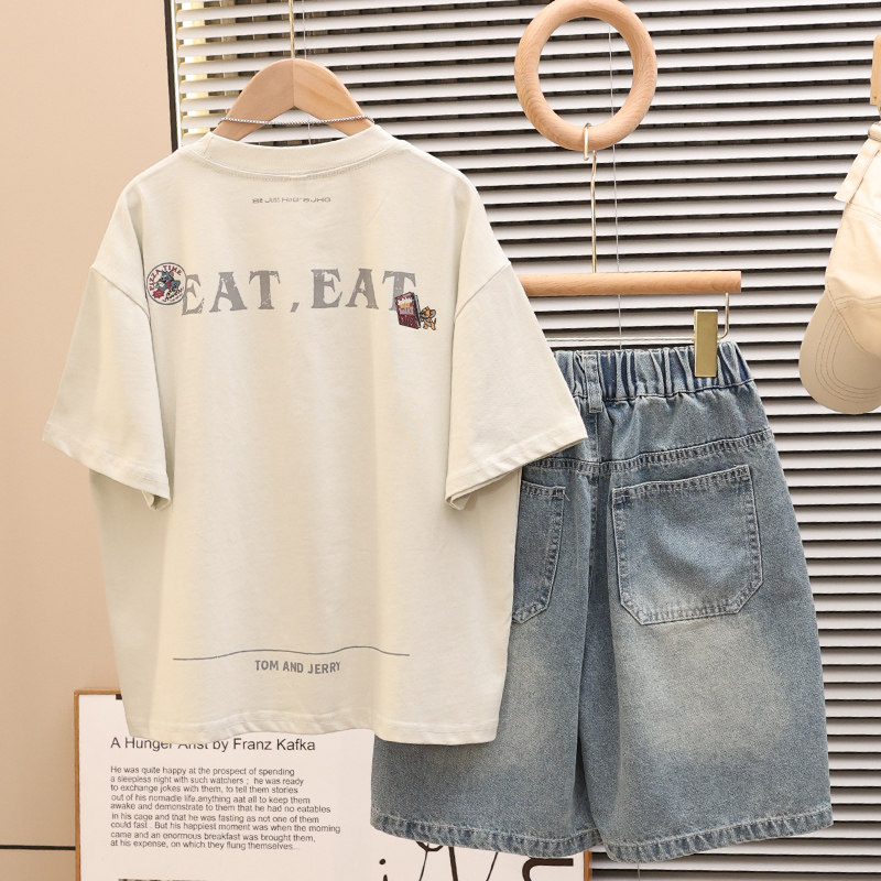 男童夏季卡通风短袖T恤套装宽松2026新款儿童夏装运动痞帅男孩潮