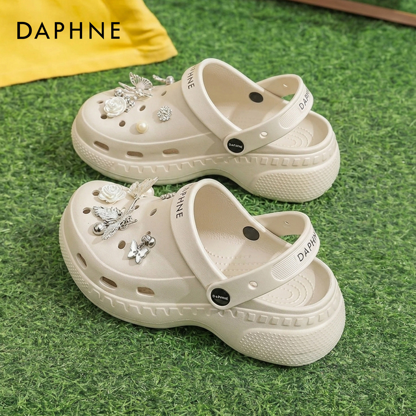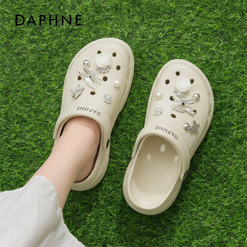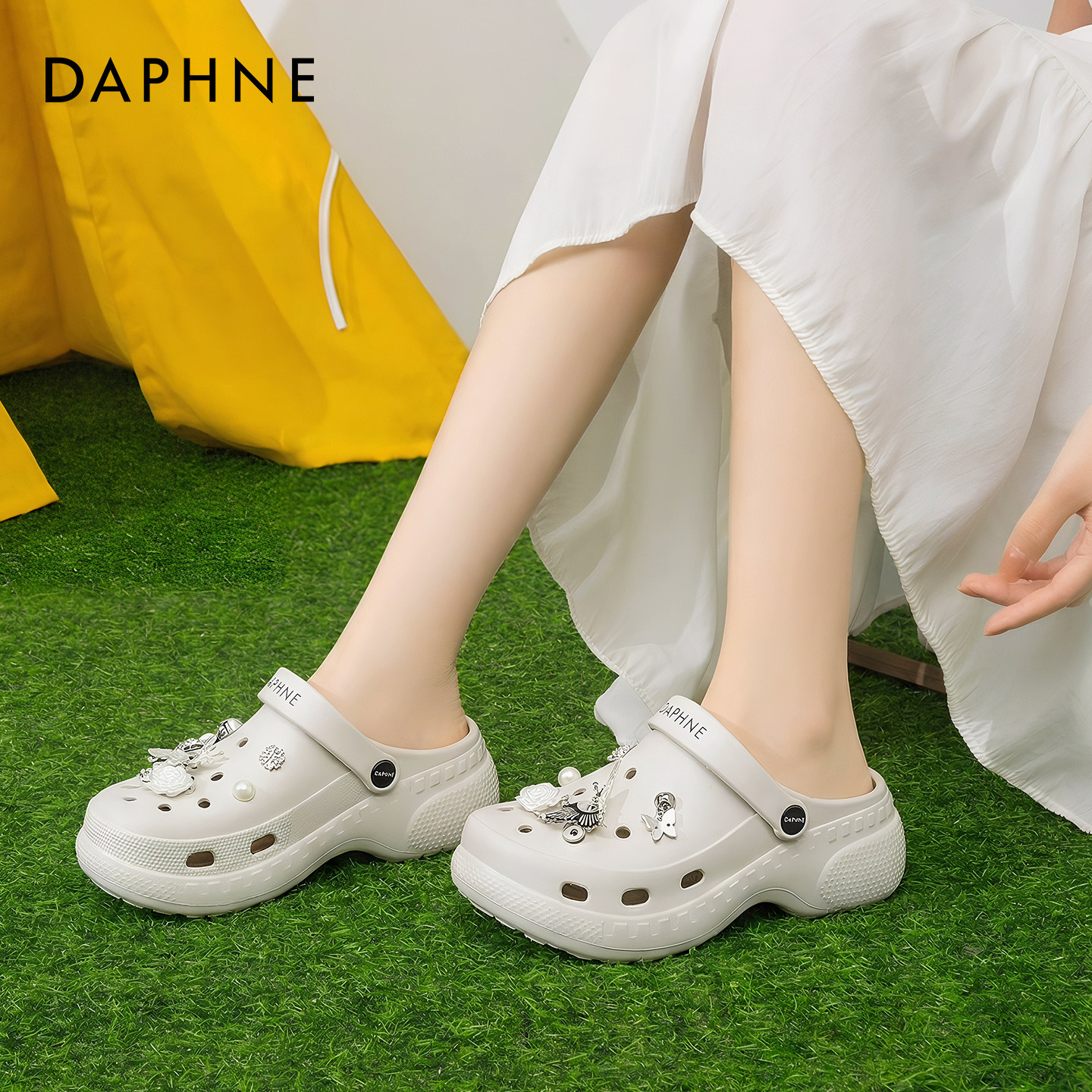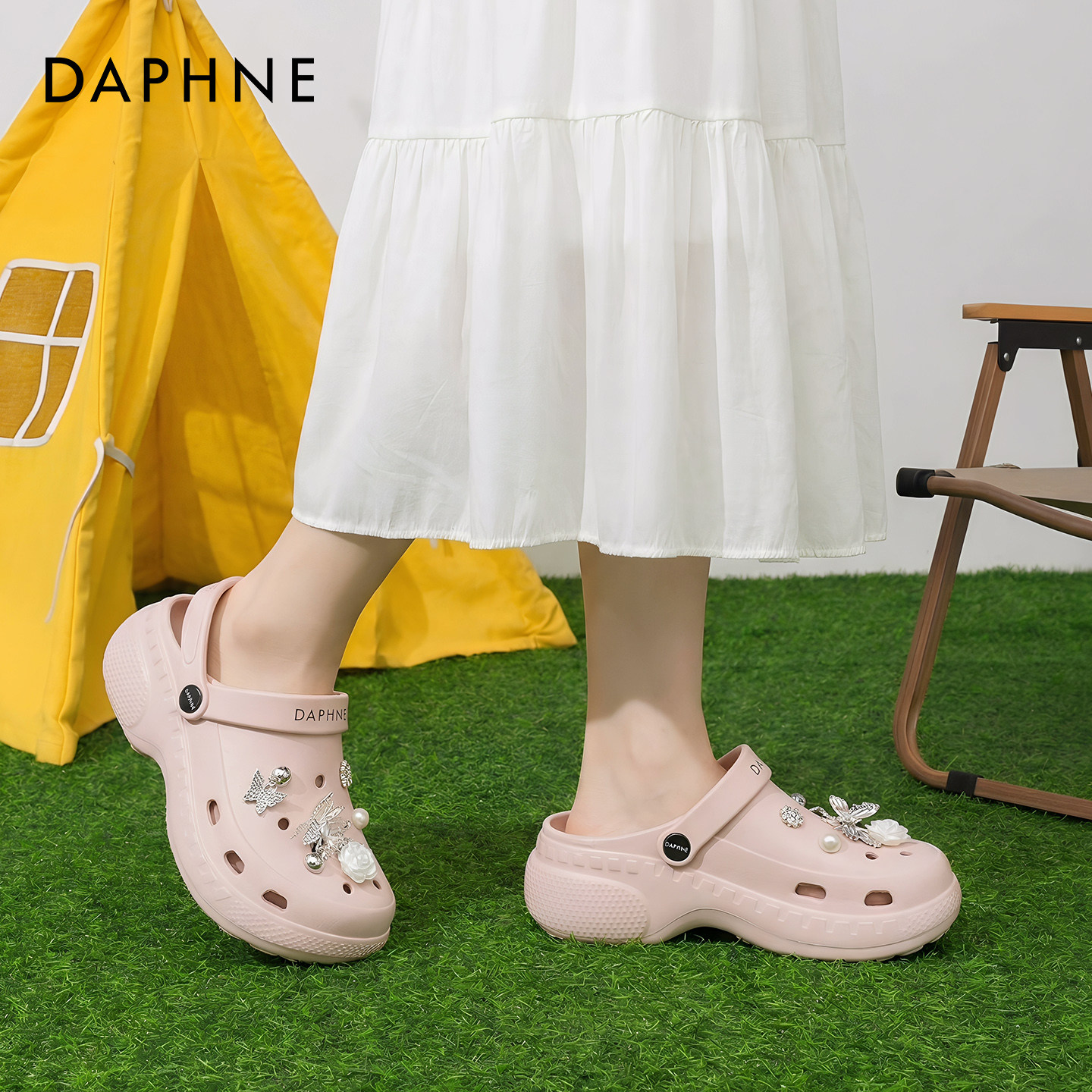 达芙妮云朵洞洞鞋女款2026新款夏季外穿超火厚底防滑拖鞋运动凉鞋