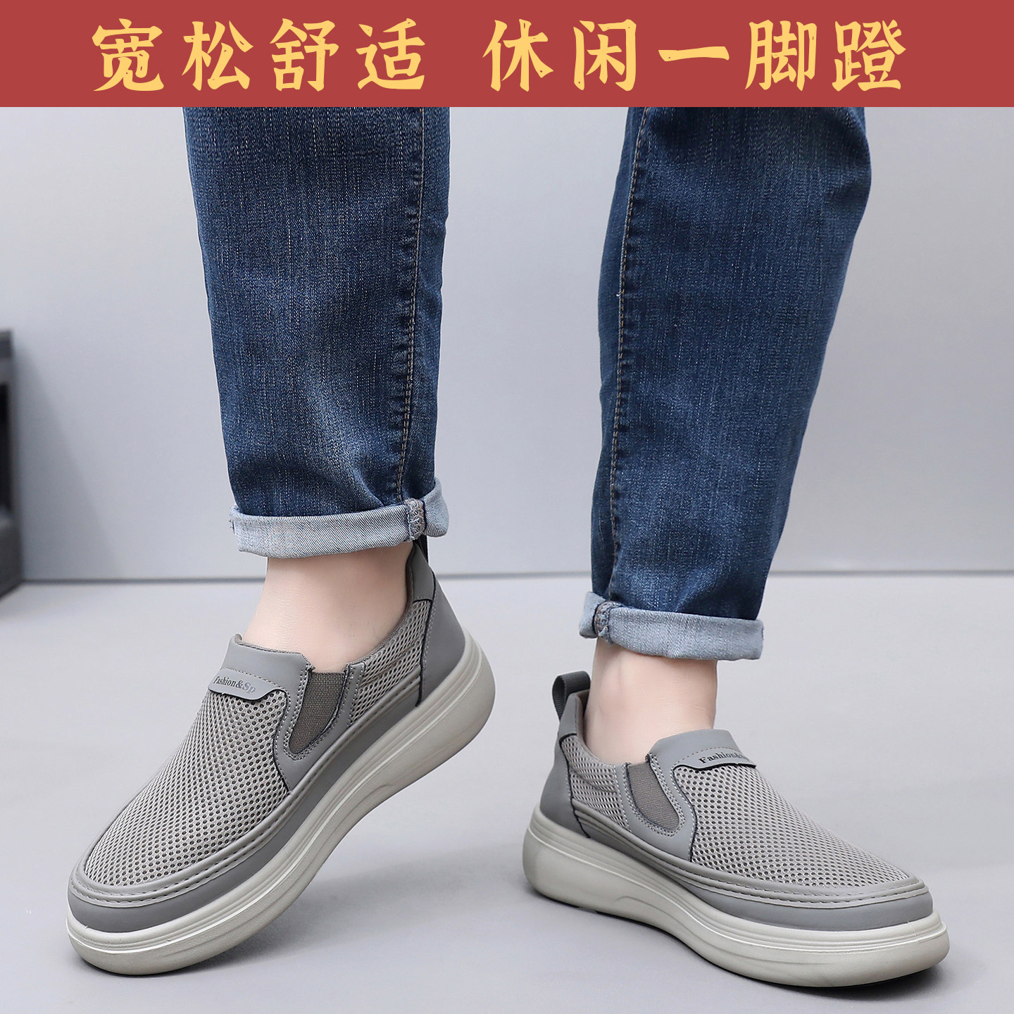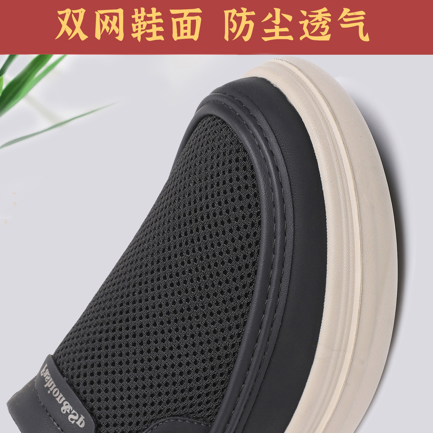 春夏老北京布鞋男鞋网面透气一脚蹬爸爸鞋厚底宽松舒适男士休闲鞋