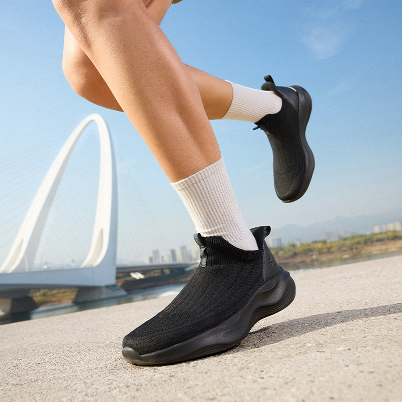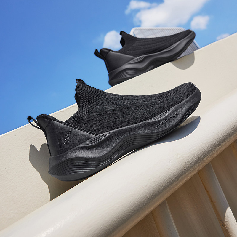 361男鞋黑色运动鞋春季新款网面透气一脚蹬懒人鞋软底回弹跑鞋男