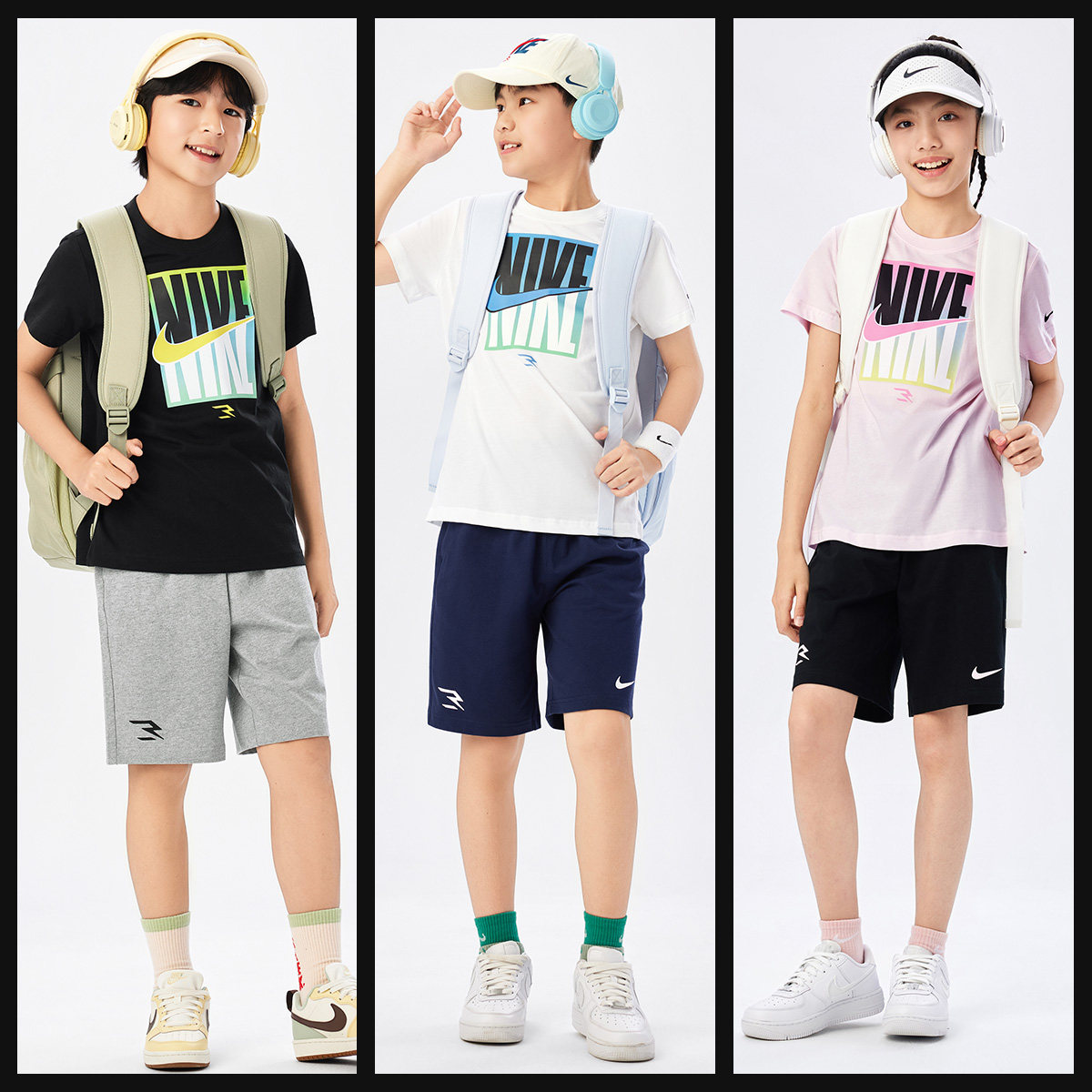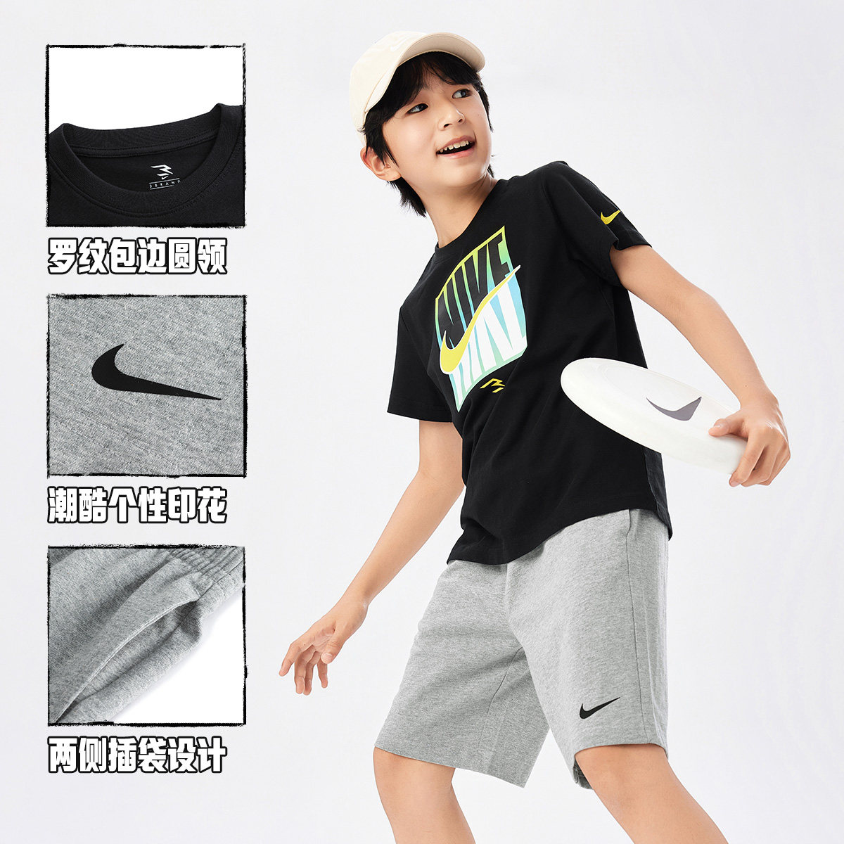 Nike 3brand儿童套装男童短袖T恤短裤五分裤子女童运动两件套夏季