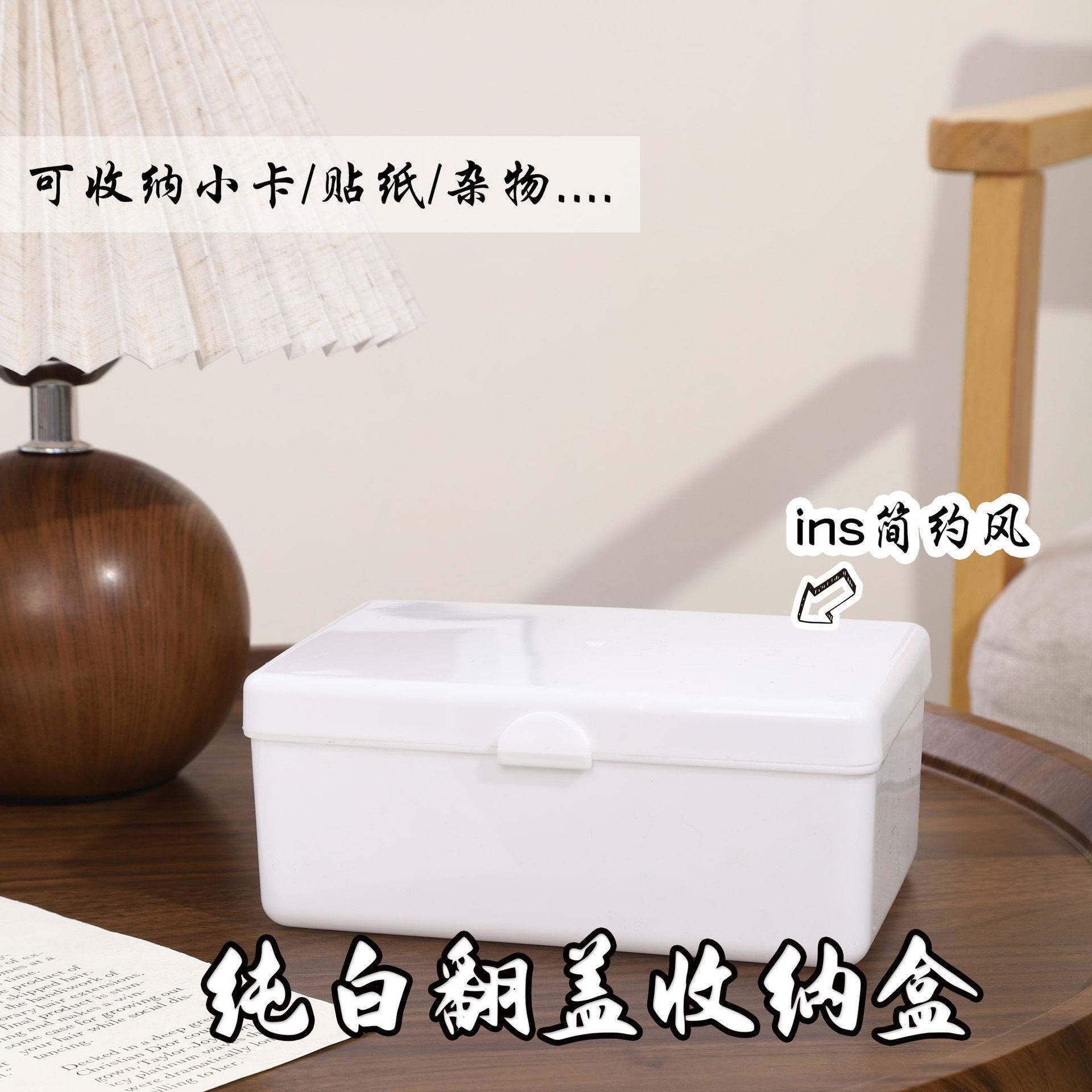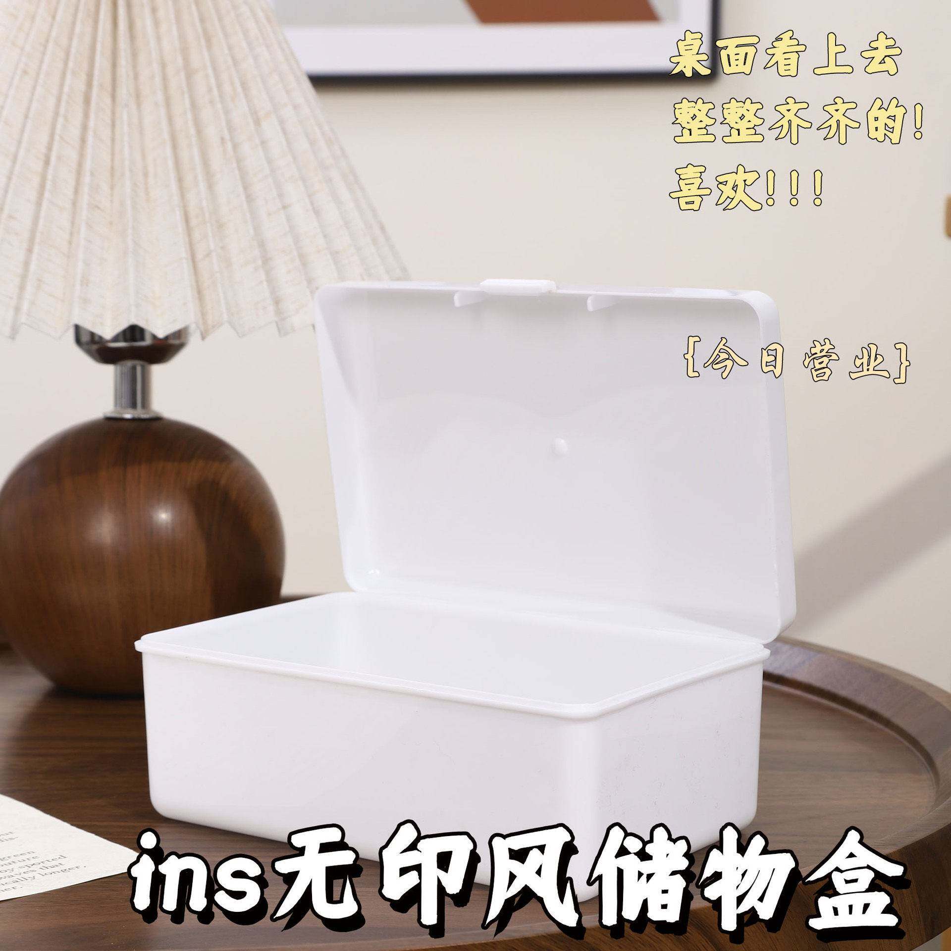 白色不透明桌面收纳盒带盖防尘学生宿舍玩具文具首饰办公室整理盒