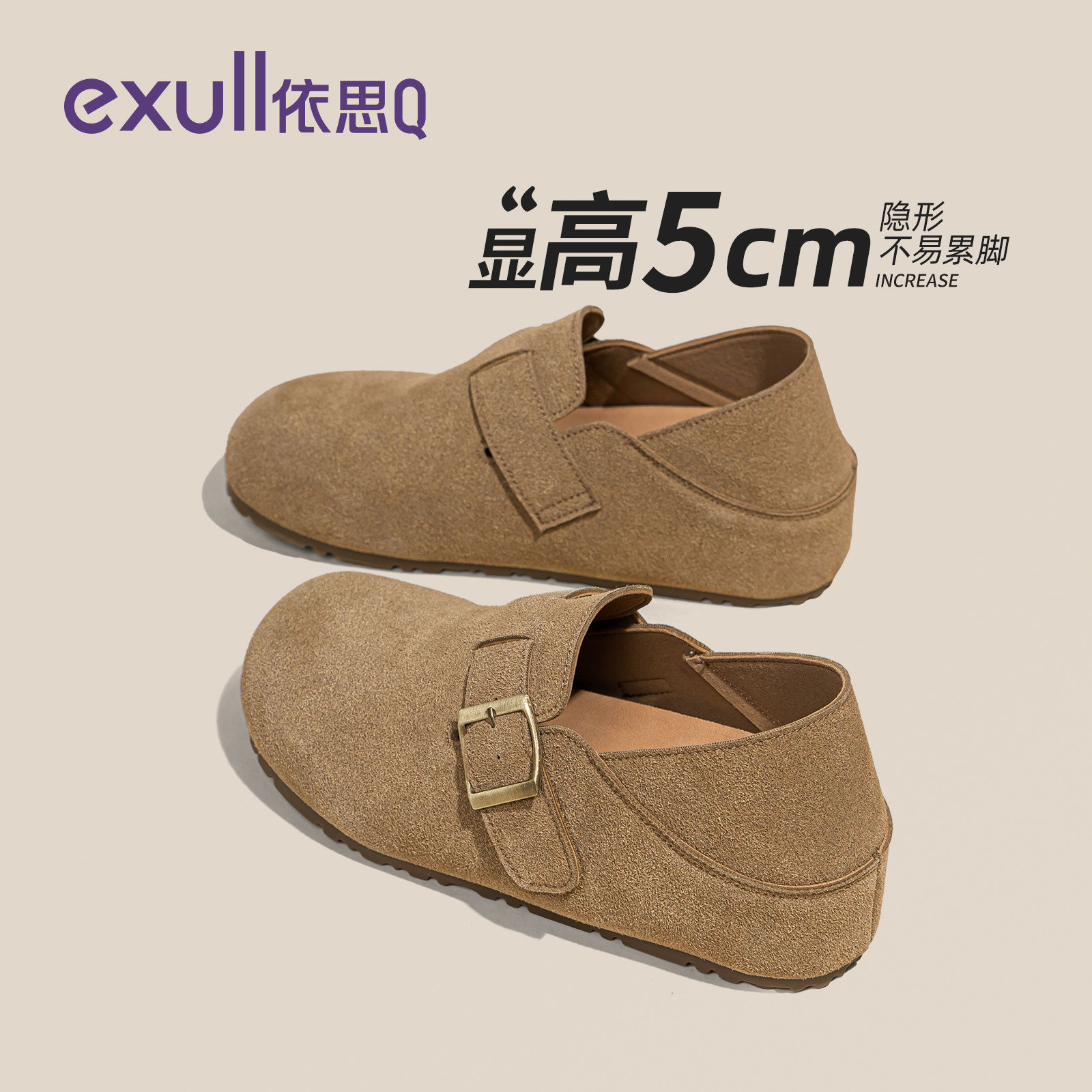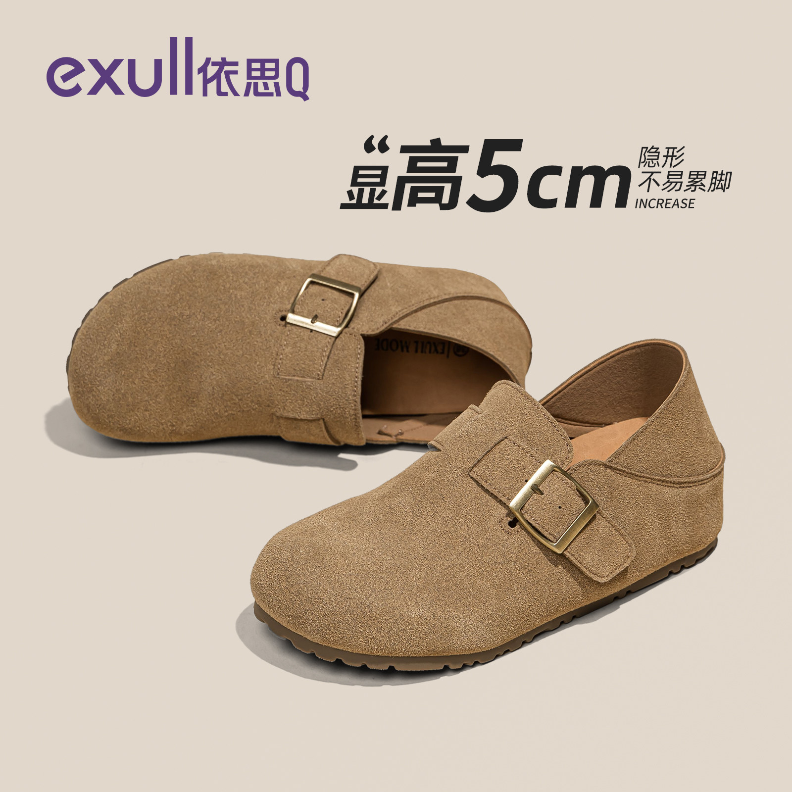 依思q勃肯鞋女2026新款内增高两穿厚底全包绝美半拖穆勒软底鞋子