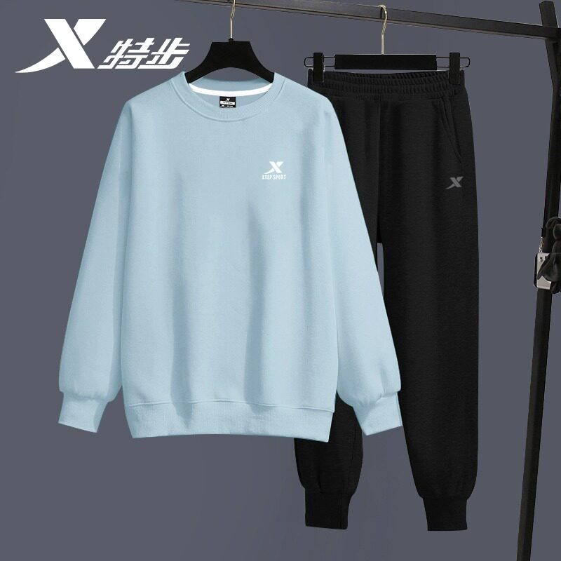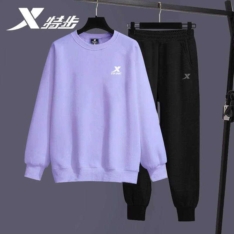 特步卫衣套装女针织跑步长袖卫裤2026春季新款纯色休闲运动服女款