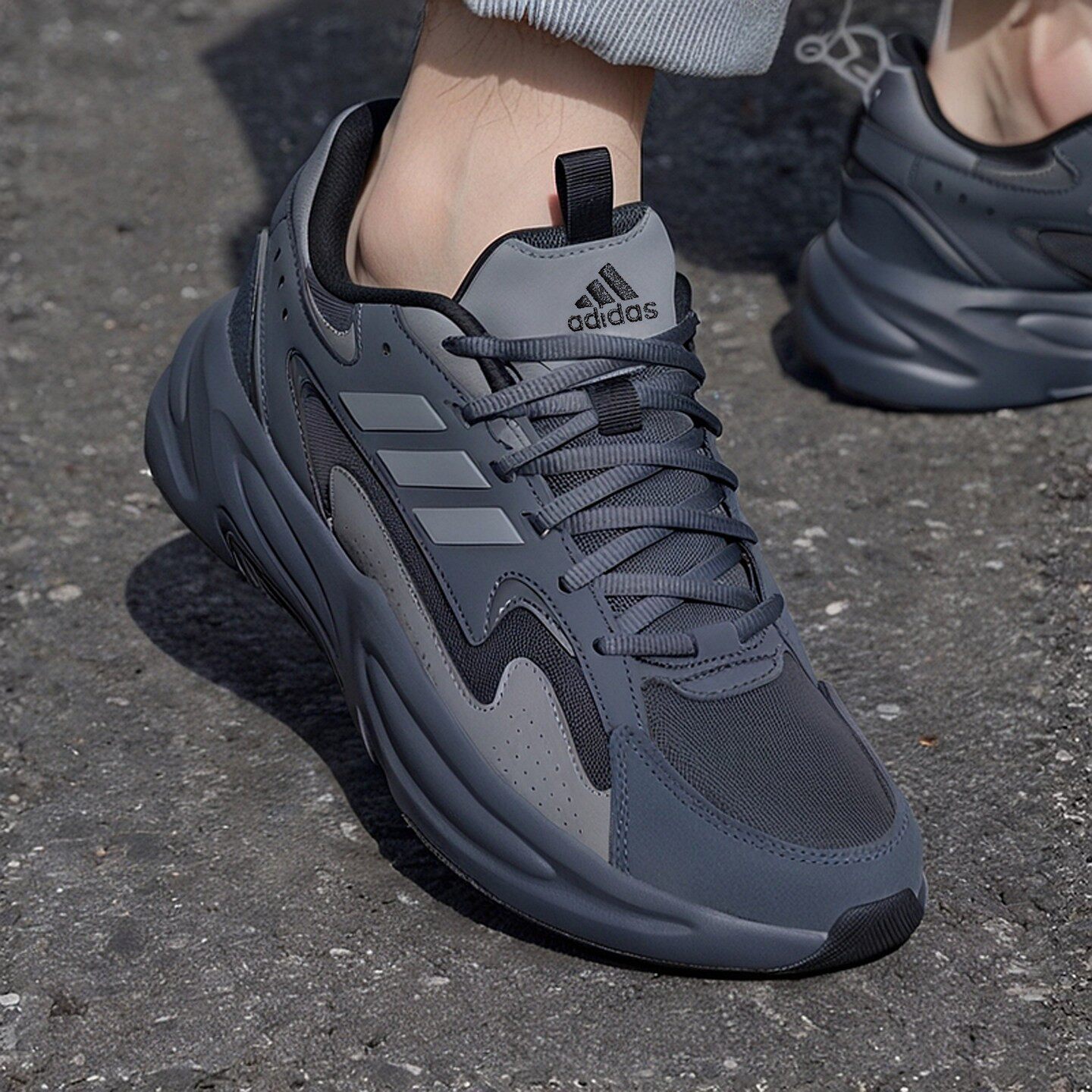 阿迪达斯休闲鞋男鞋春季新款老爹鞋灰色复古运动鞋厚底轻便跑步鞋
