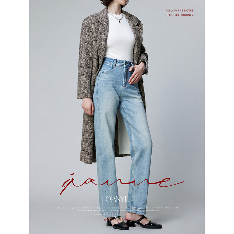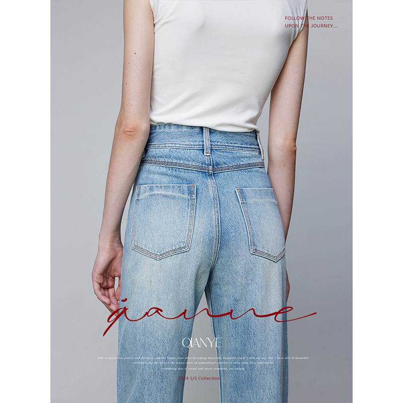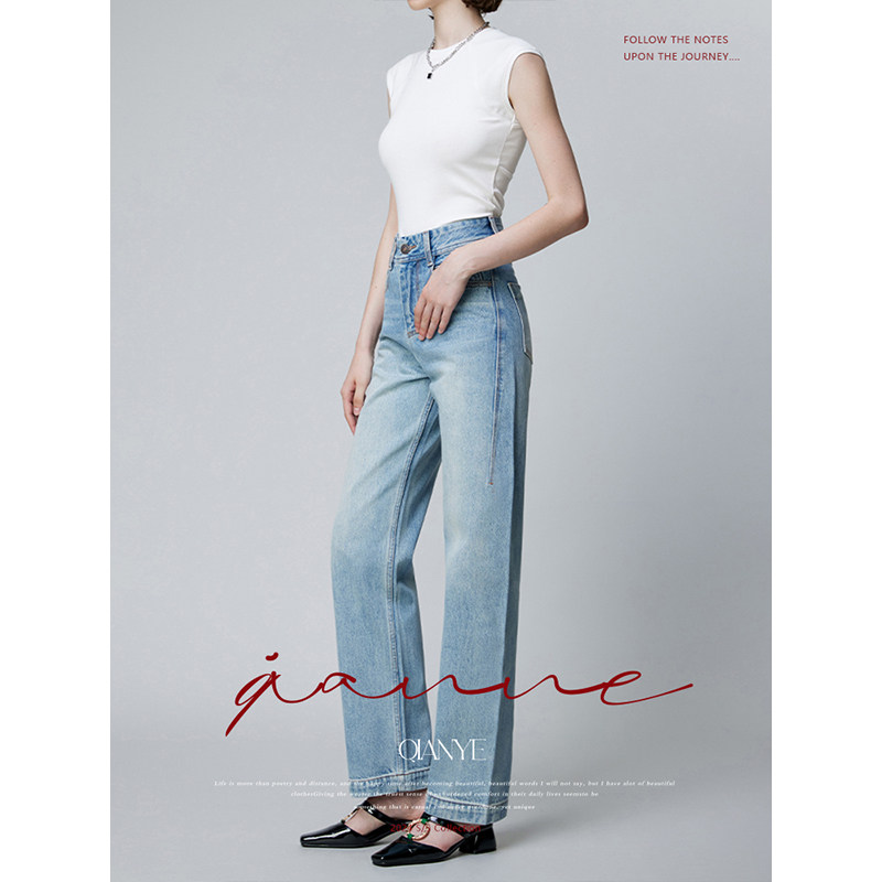 2025春秋新款直筒牛仔裤女裤时尚潮流女款高腰阔腿宽松百搭长裤子