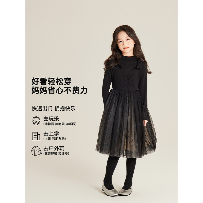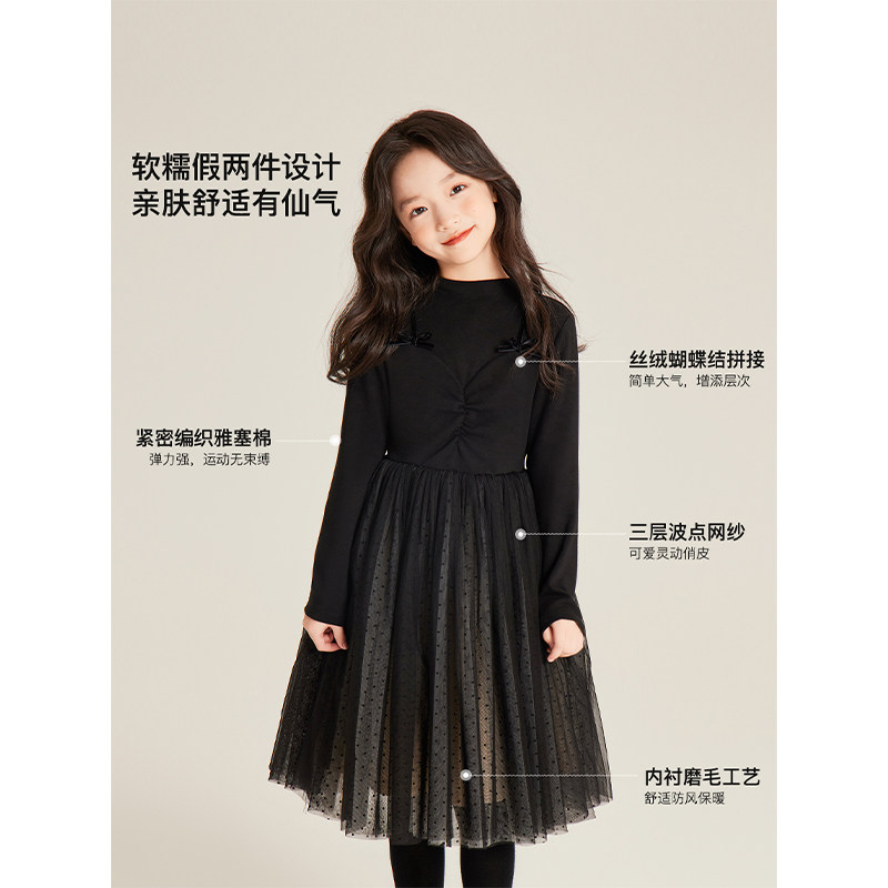Amybaby女童连衣裙秋冬季2025新款法式波点高级感轻奢拼接连衣裙
