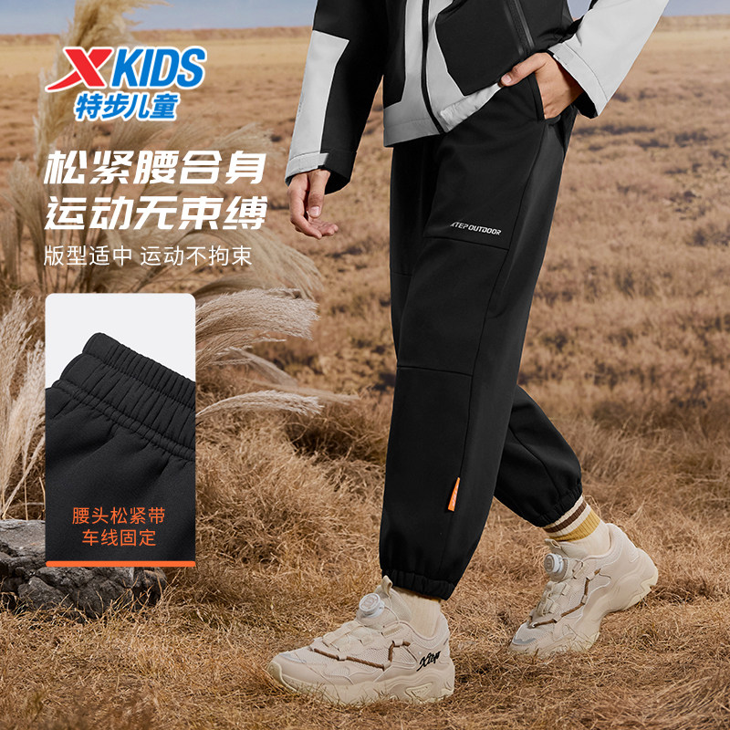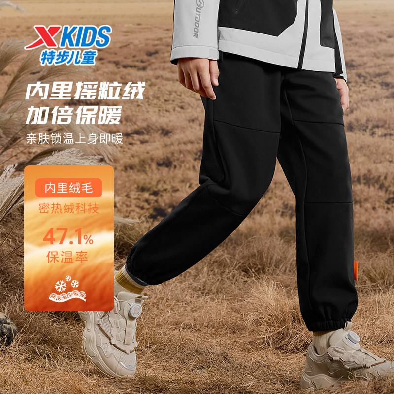 特步童装儿童户外运动裤男童三防保暖长裤青少年春季大童加绒裤子
