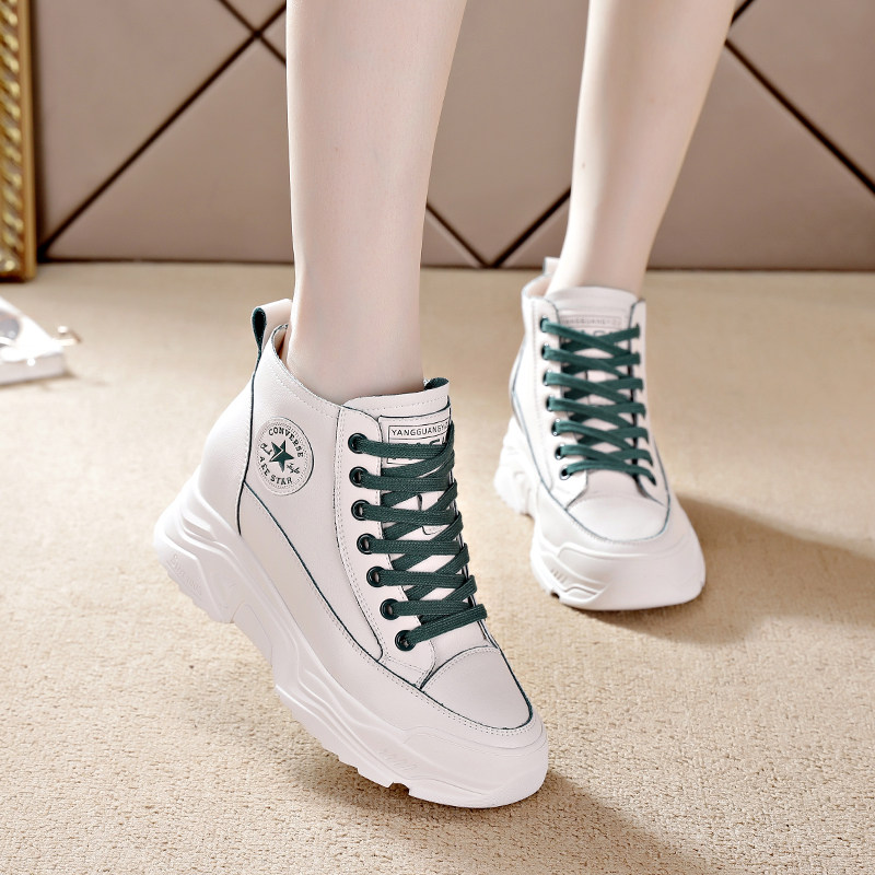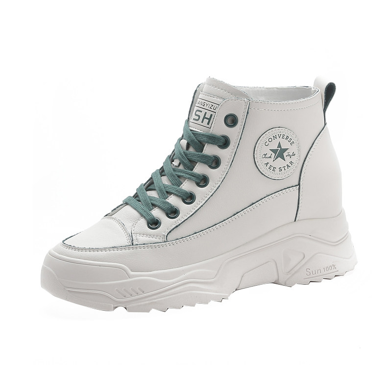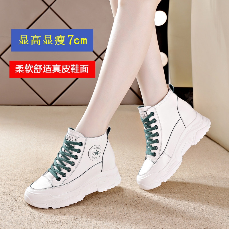 真皮厚底内增高小白鞋女冬季运动休闲轻便马丁短靴加绒保暖高帮鞋