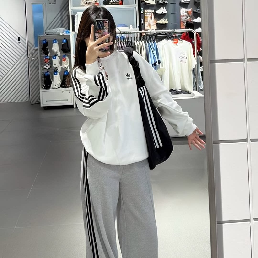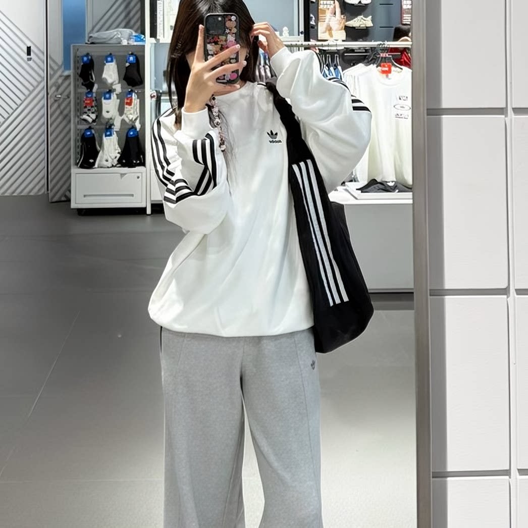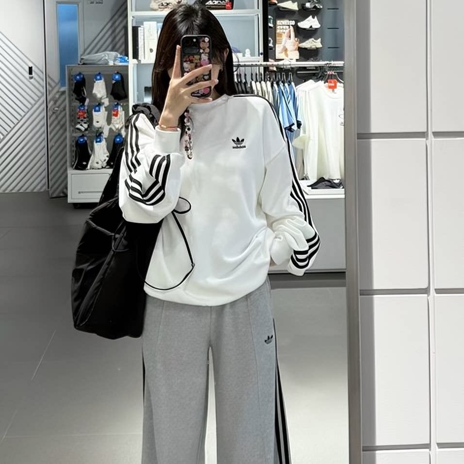 阿迪达斯官方正品三叶草卫衣女款男款春季新款保暖上衣毛圈打底衫