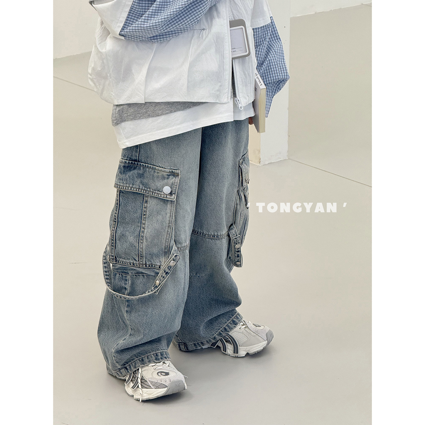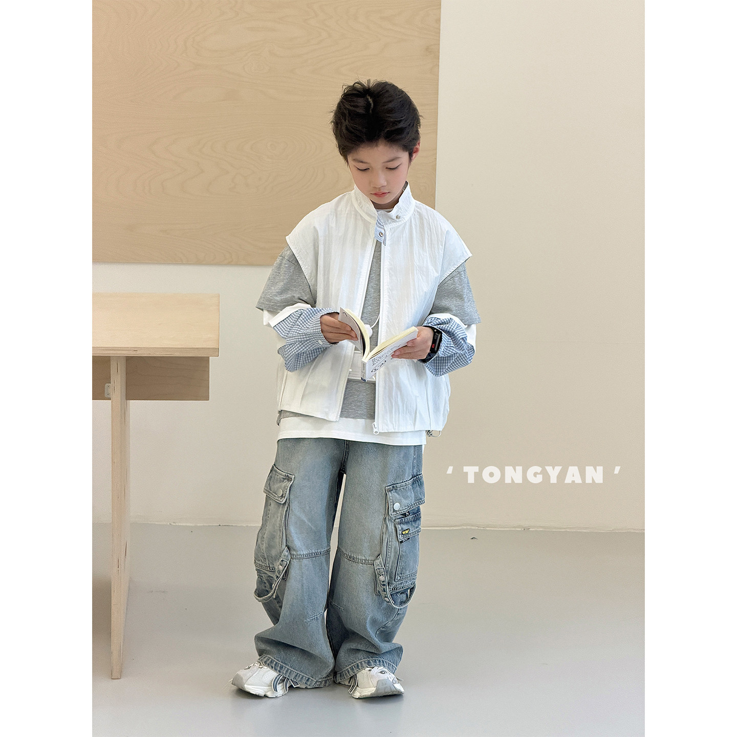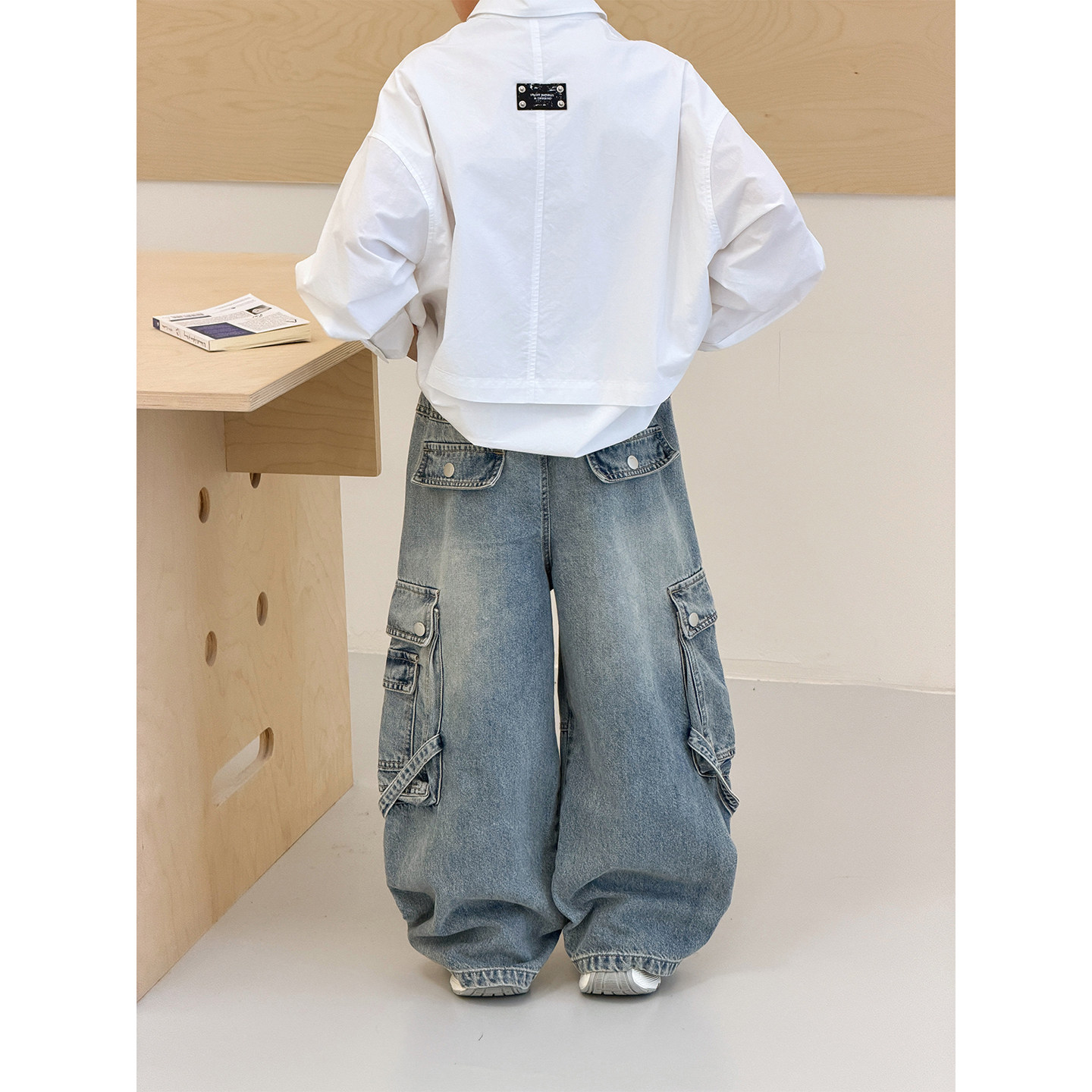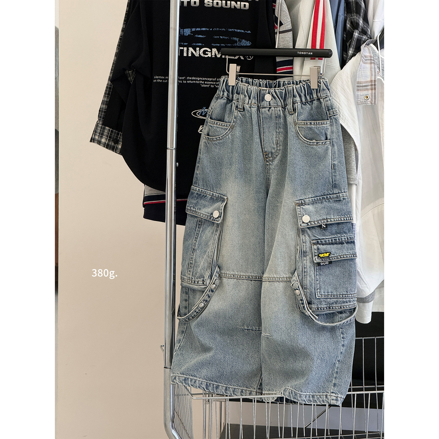 男童裤子2026春装新款儿童韩版老爹裤大口袋工装中大童牛仔裤童装
