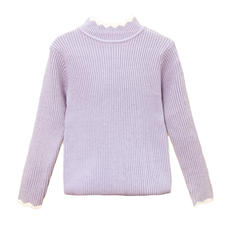 女童毛衣春秋薄款上衣新款春装大童中领女孩一体绒针织加绒打底衫