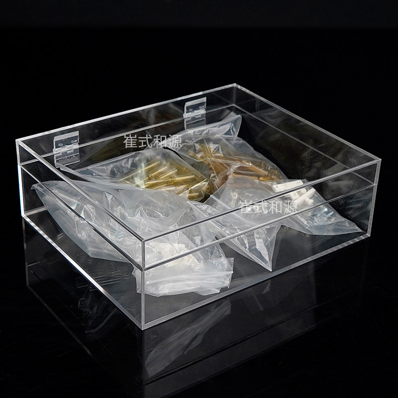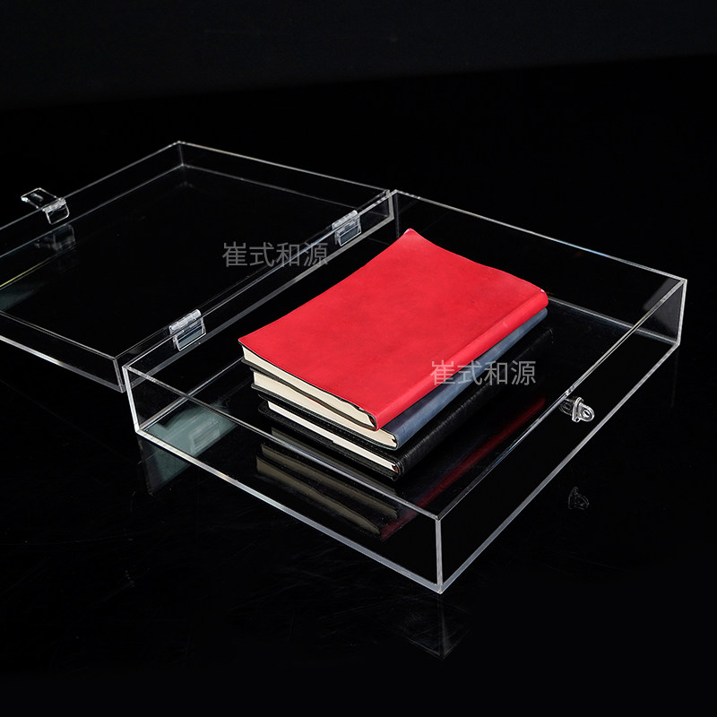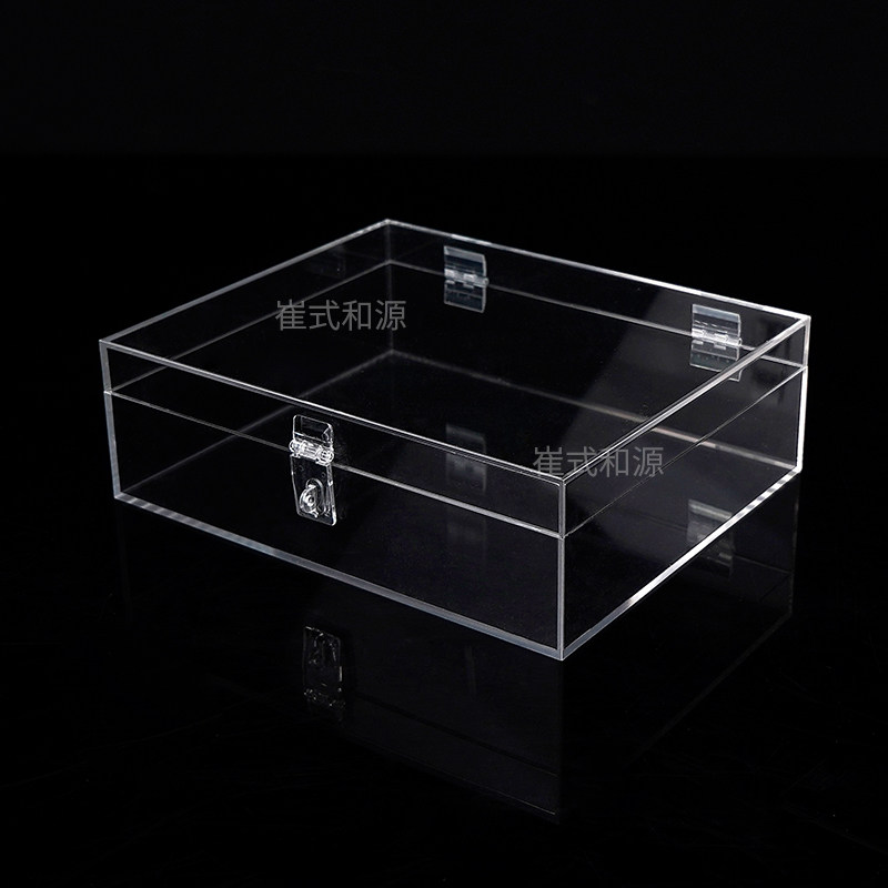 透明翻盖收纳盒带锁亚克力展示盒防尘化妆品盒桌面文具储物箱带盖