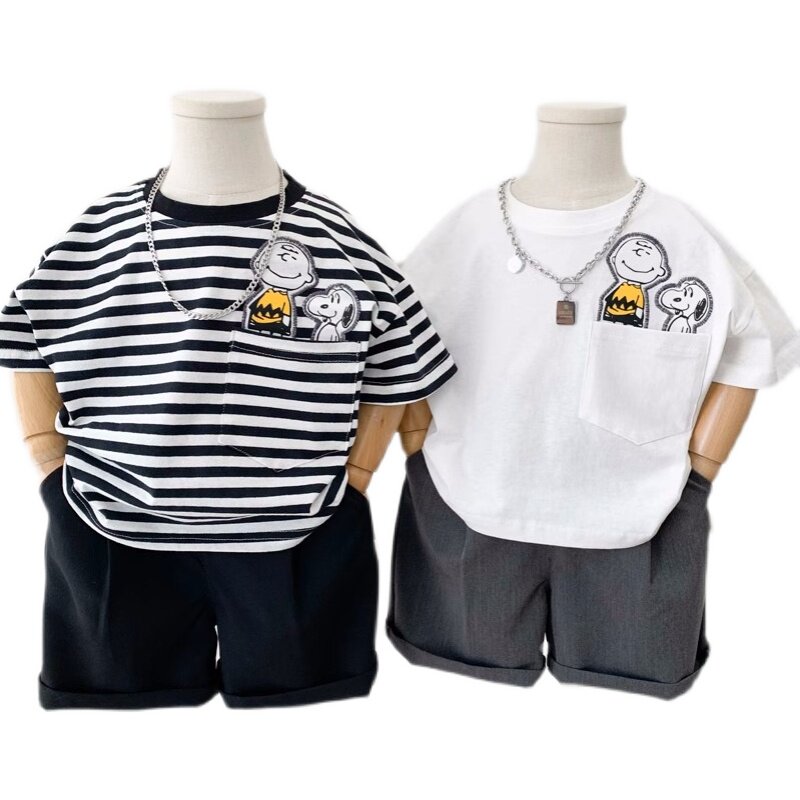 男童短袖T恤纯棉夏季薄款洋气儿童韩版半袖条纹小男孩卡通上衣潮