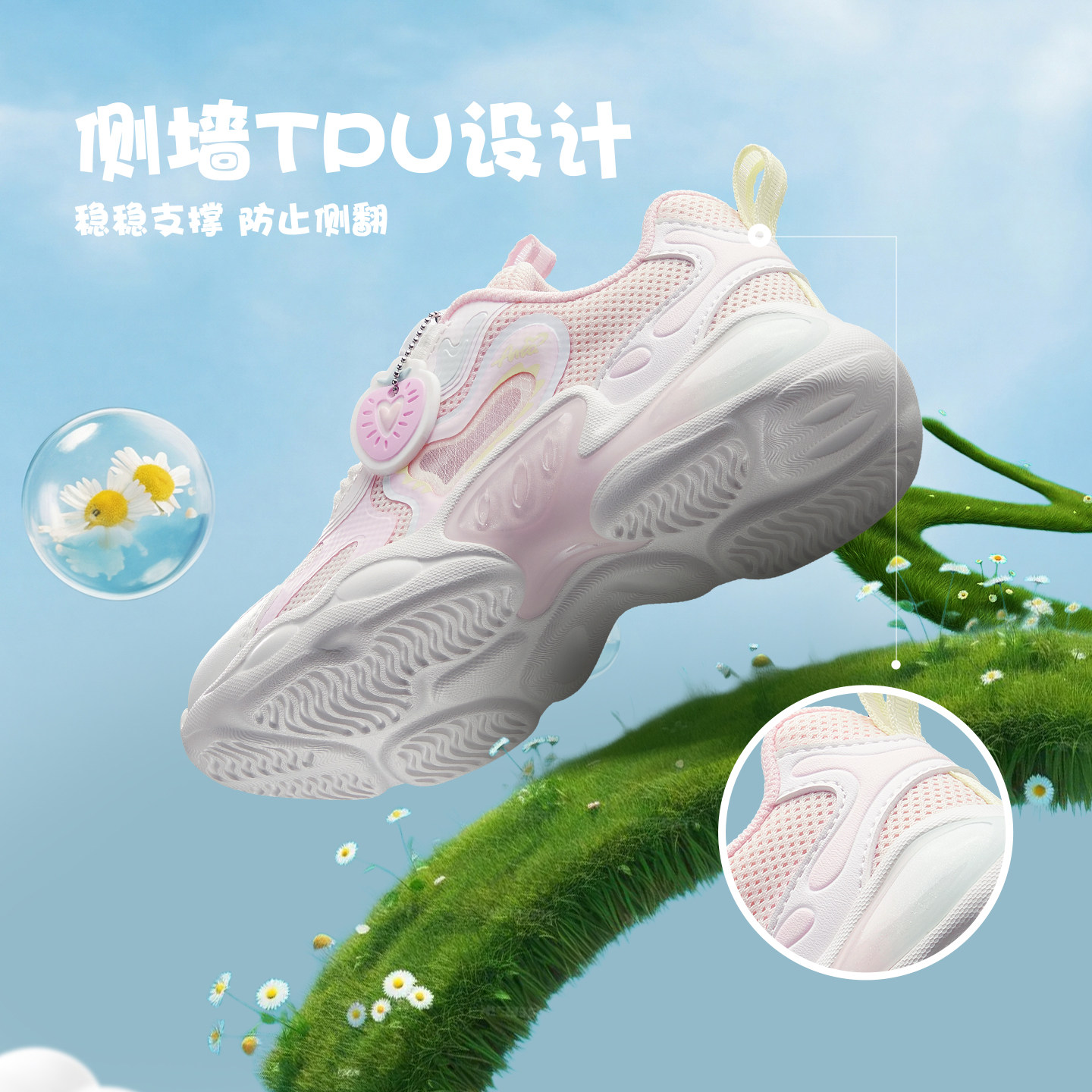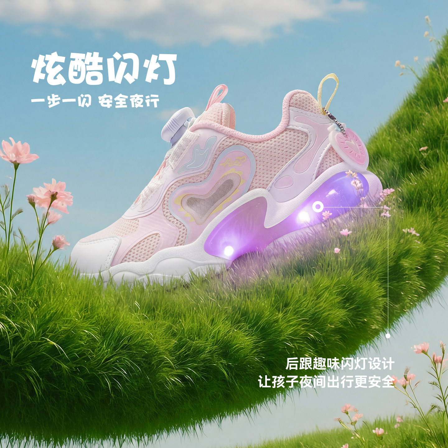 安踏儿童女小童灯鞋2026夏季新款闪灯鞋儿童旋钮运动鞋童鞋跑步鞋