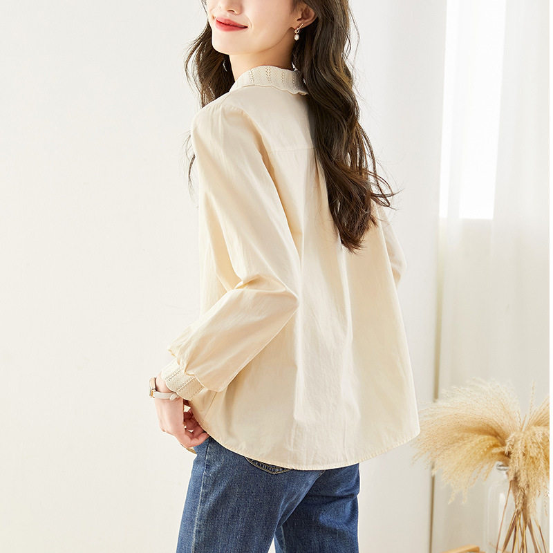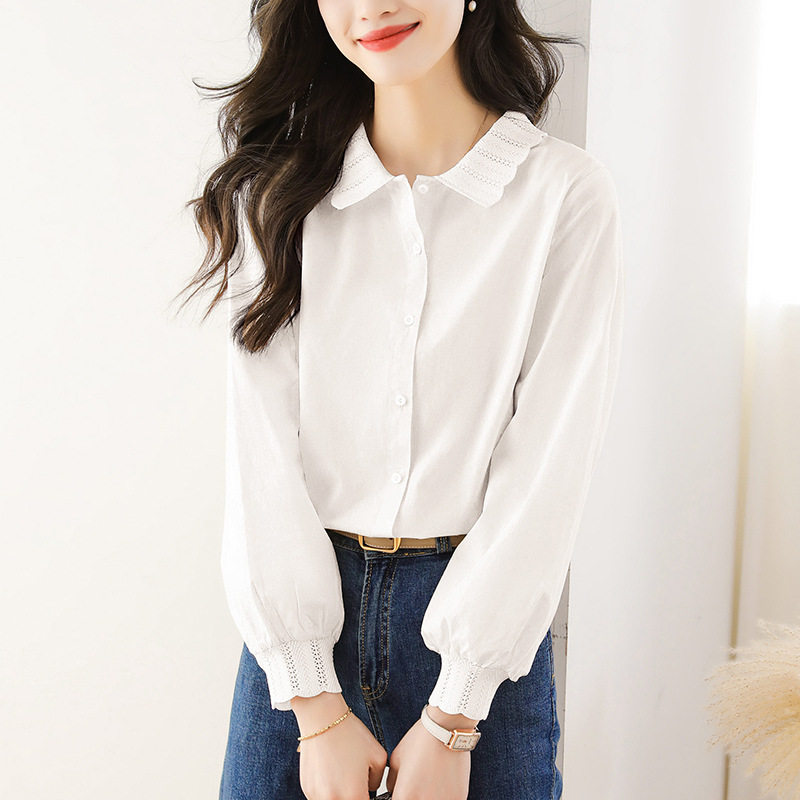 2026早春新法式娃娃领纯棉衬衫女款宽松显瘦灯笼袖别致通勤上衣女
