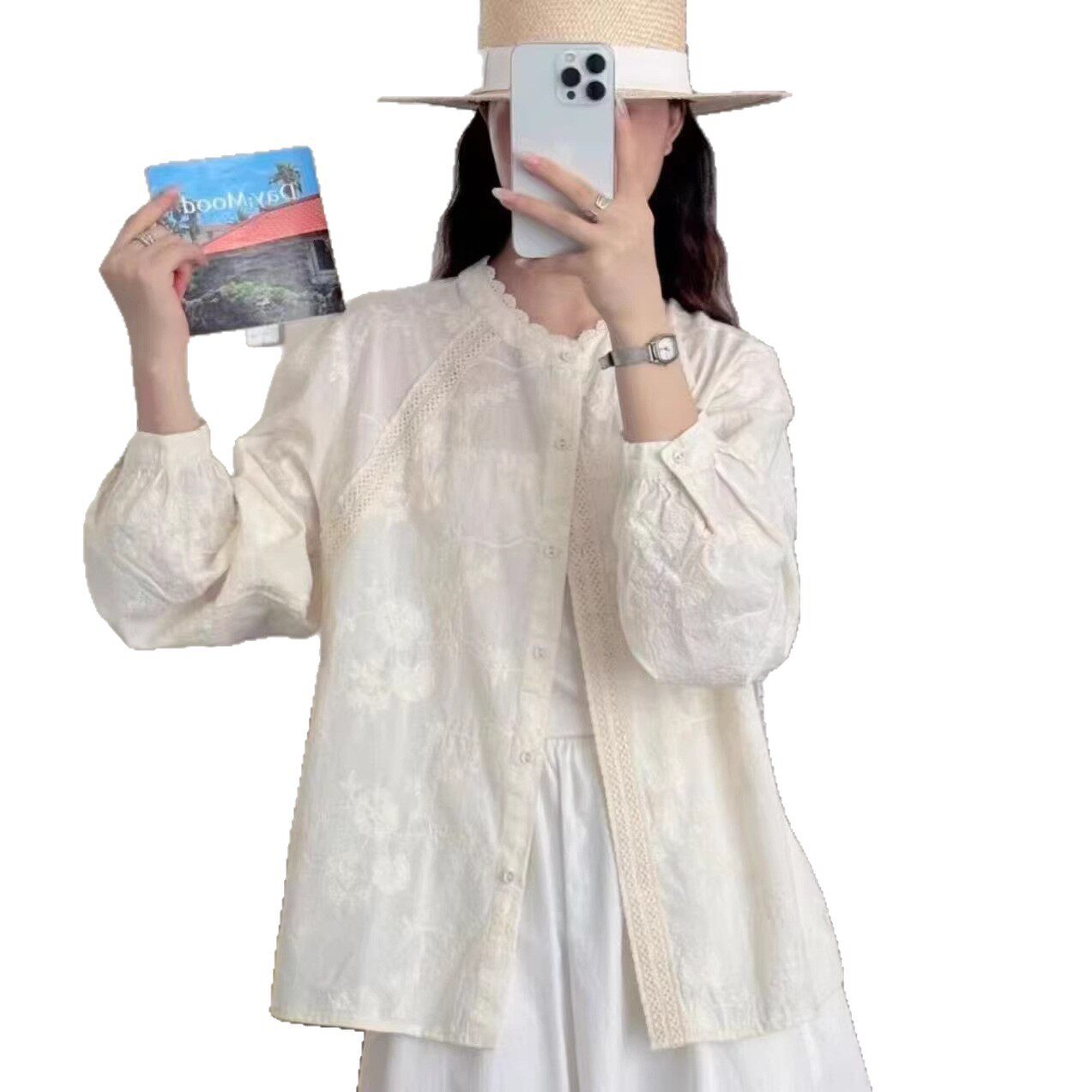 2026年春款衬衫长袖提花蕾丝花边新款亲肤衬衣上衣法式学院风衬衫