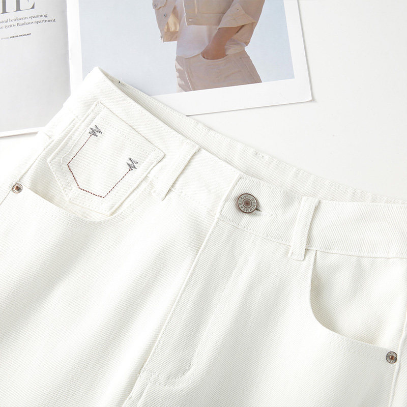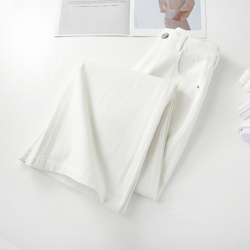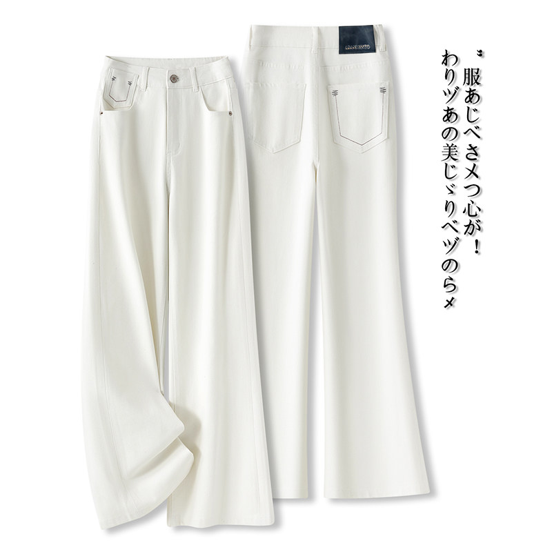 白色牛仔裤喇叭裤女春季2026新款高腰简约时尚显瘦直筒微喇长裤子