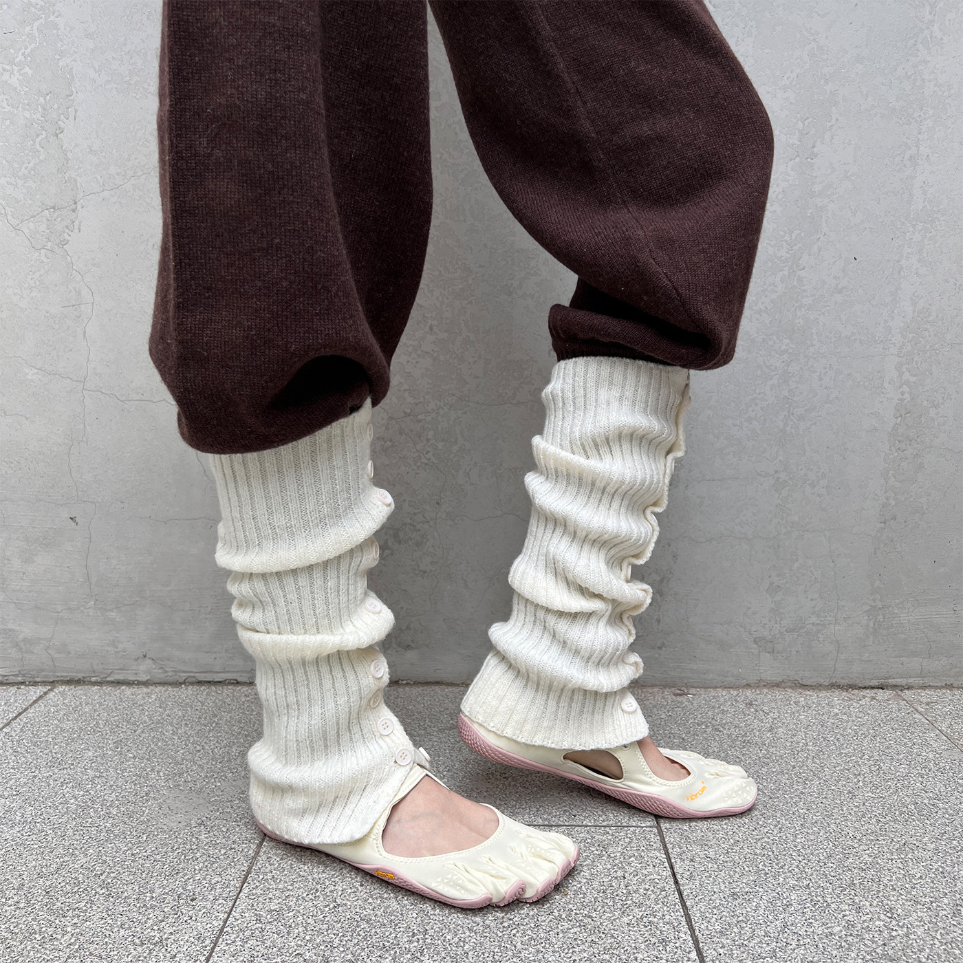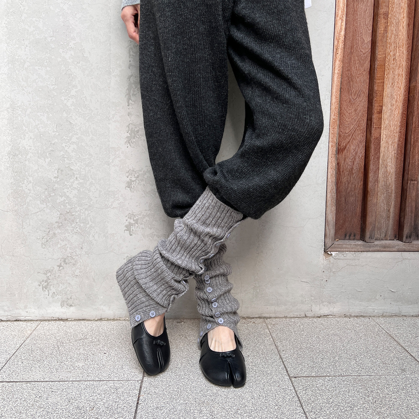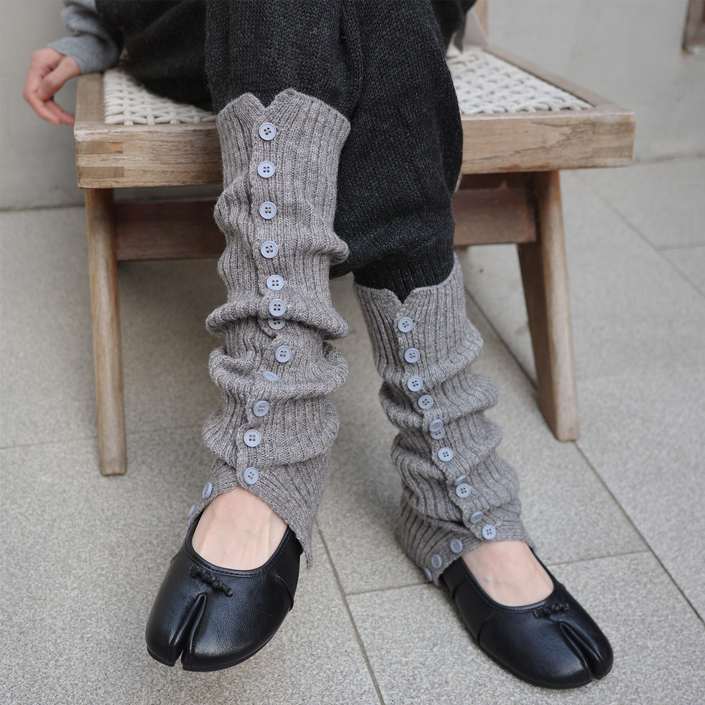 夜间教习室灰色袜套女秋冬针织纽扣开叉保暖堆堆袜显瘦百搭小腿套