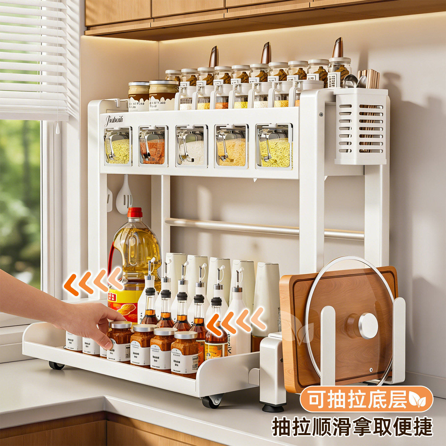 抽拉式厨房调料品置物架多功能台面放调味料瓶罐放置架筷子收纳盒