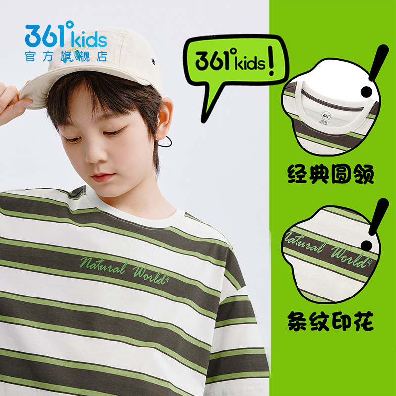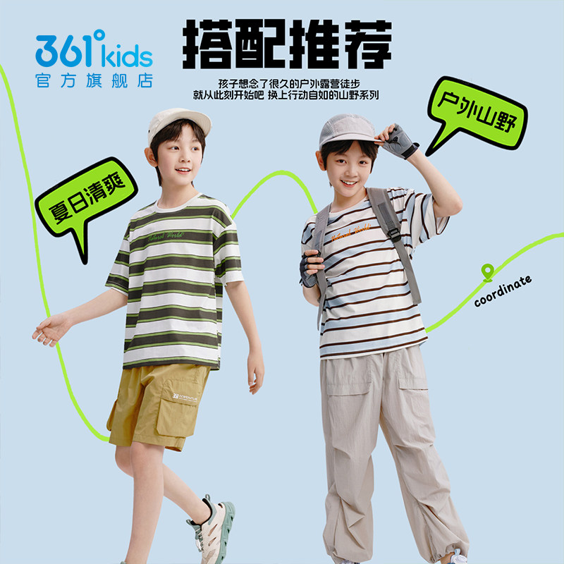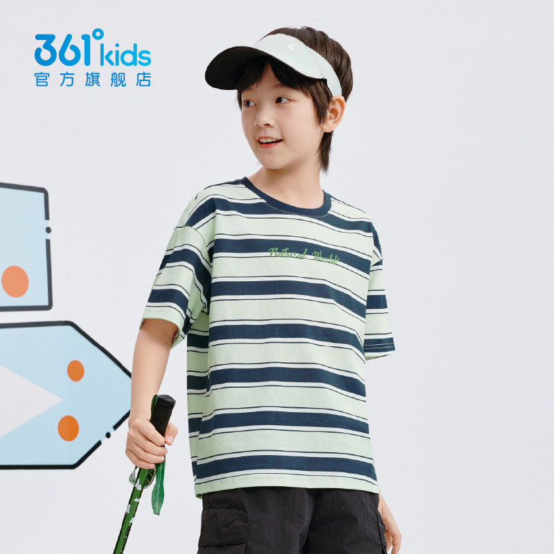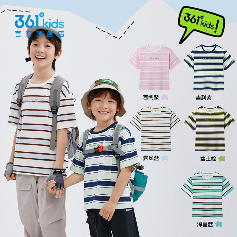 361°童装男女童短袖T恤2026夏季新款儿童条纹t恤户外休闲上衣