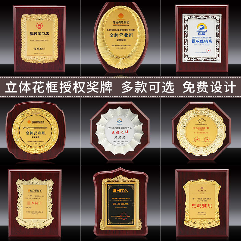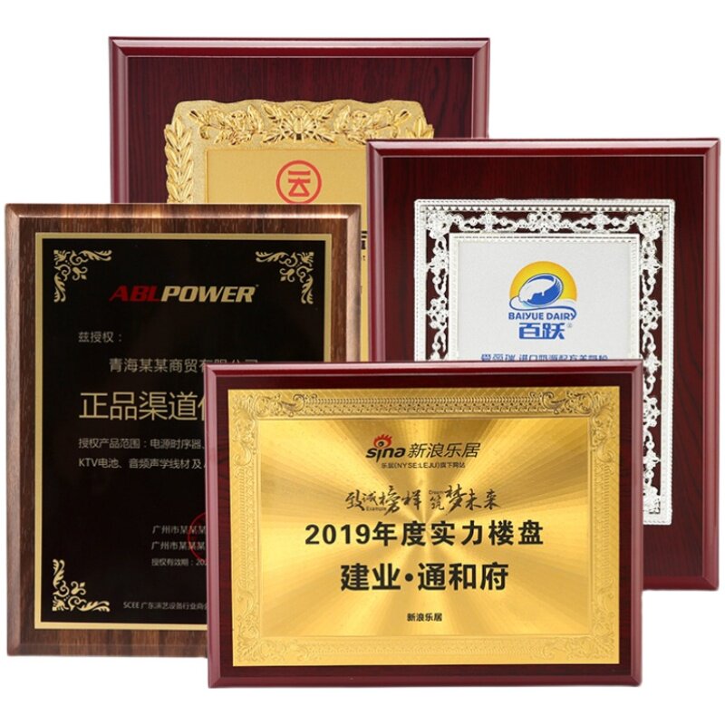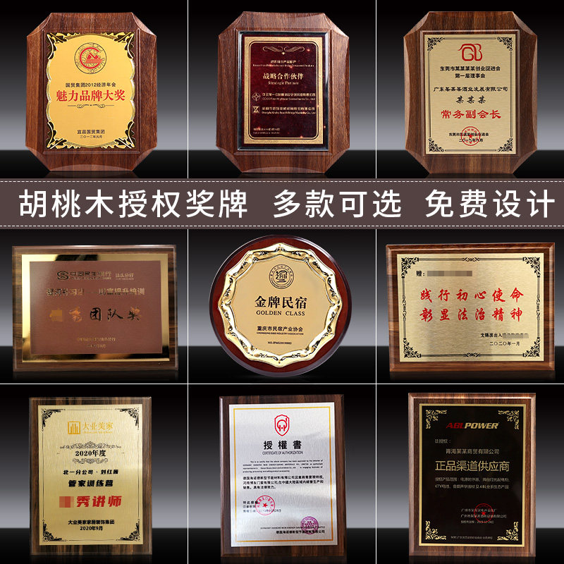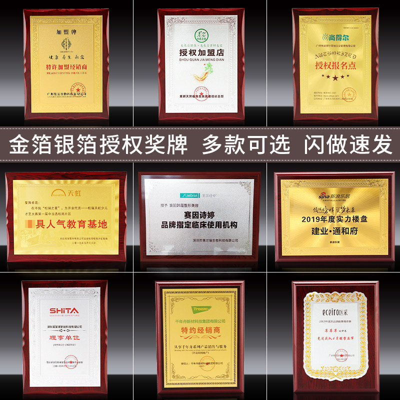 授权牌木托奖牌授权书高档牌匾定制做金银箔奖牌铜牌微商代理水晶