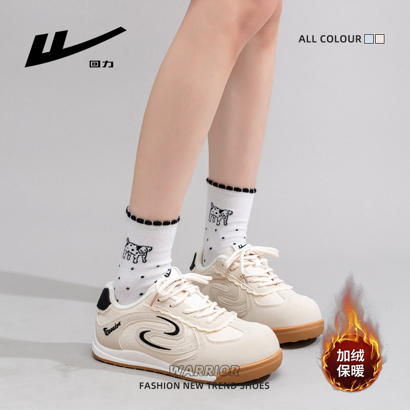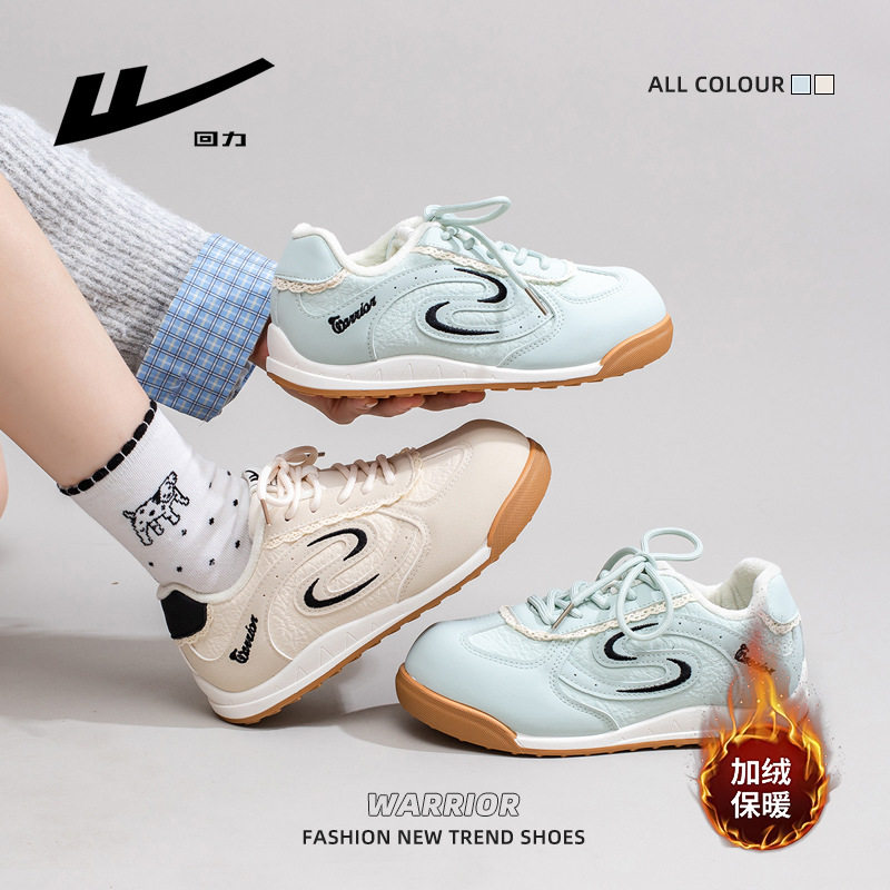 回力德训鞋女2025秋冬季新款薄荷绿皮面二棉女鞋加绒百搭小白鞋女