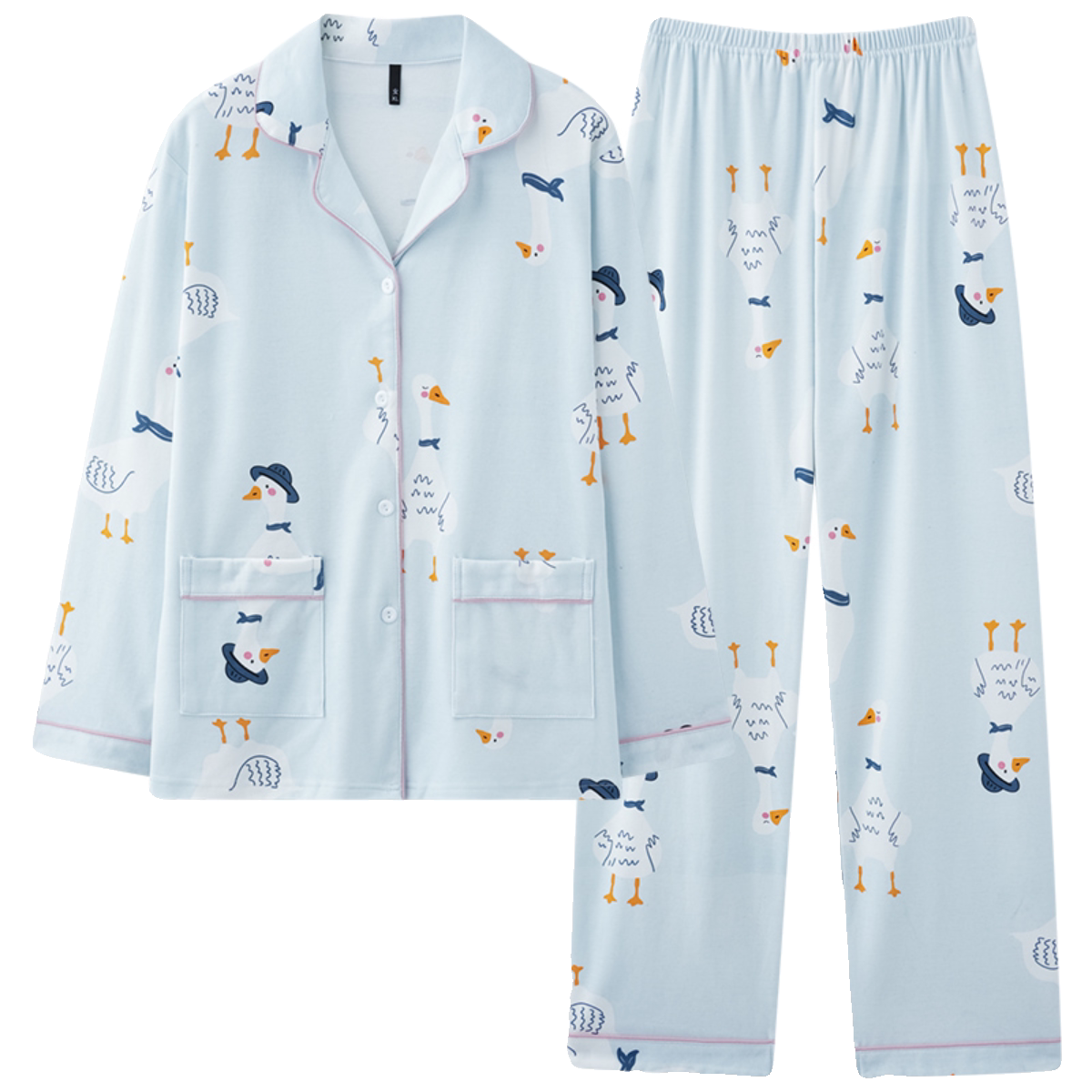 睡衣女款春秋款长袖纯棉开衫休闲可爱卡通少女学生秋季大码家居服