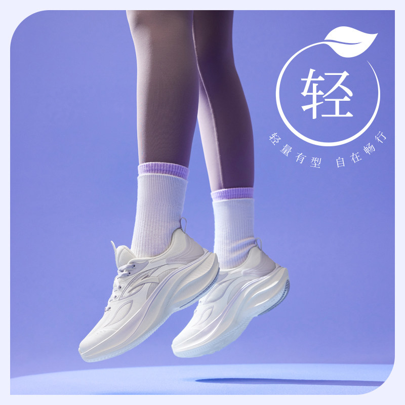 安踏叶子5女鞋厚底跑步鞋春款足弓支撑女鞋轻便减震透气运动鞋女