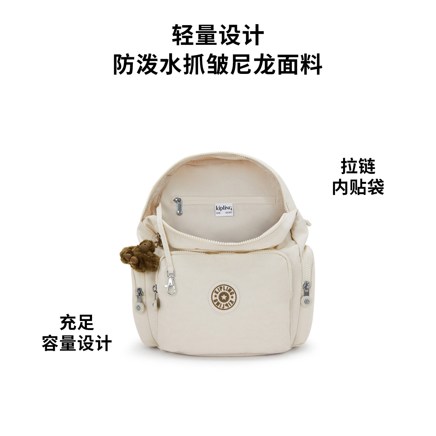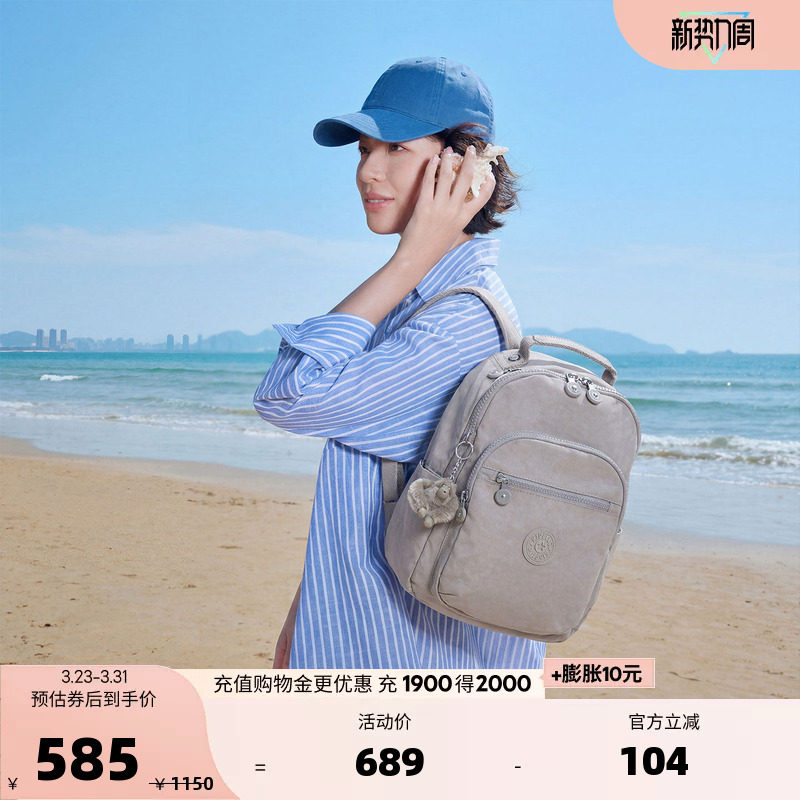 Kipling女款2026春夏新款轻便时尚简约书包双肩背包|CITY ZIP系列