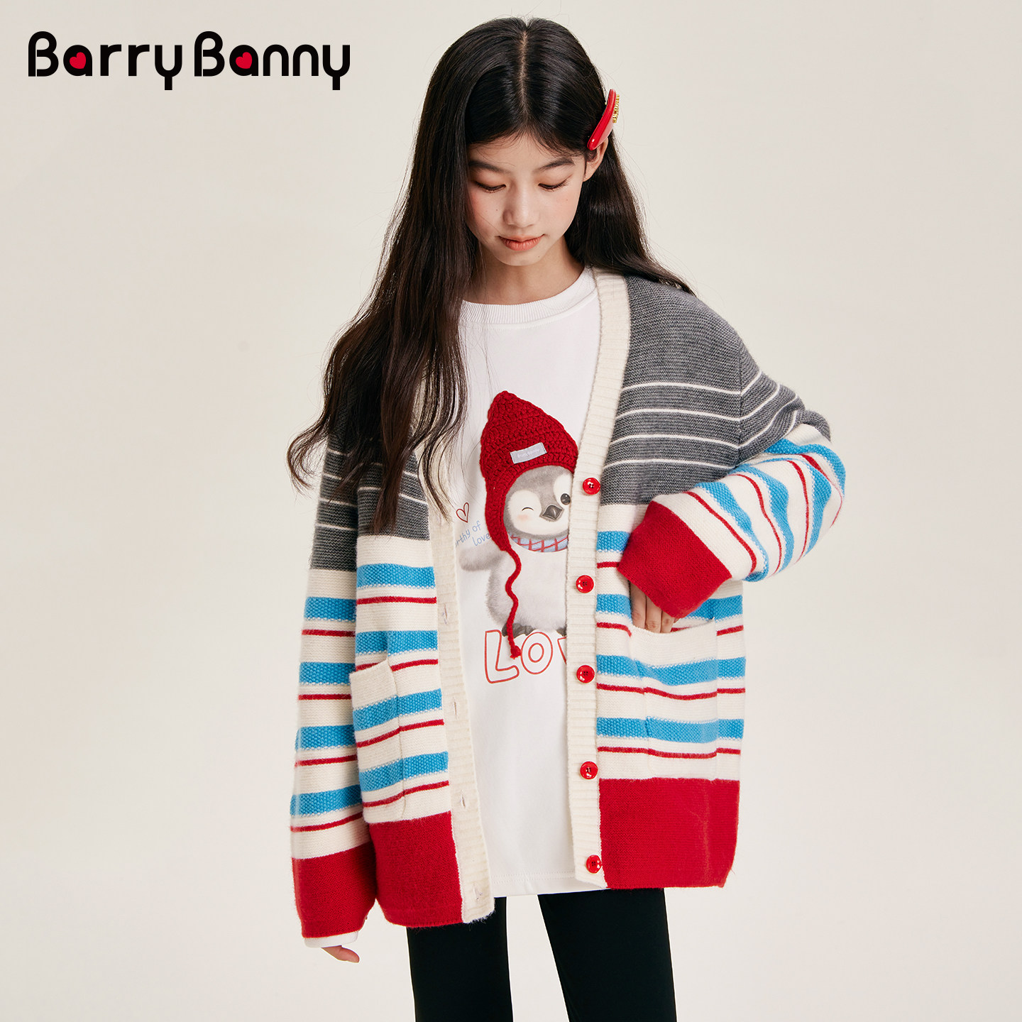 BarryBanny女童针织开衫2026春季新款中大童软糯亲肤儿童毛衣上衣