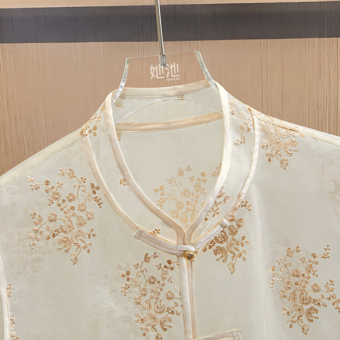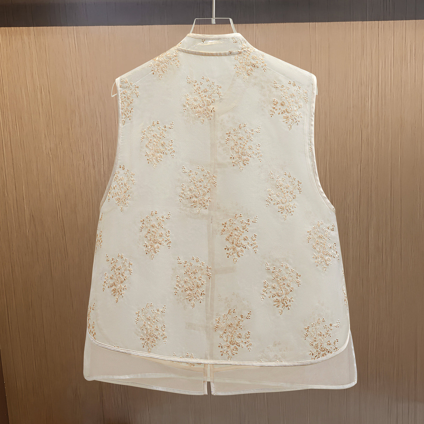 她池新中式马甲2026春装新款女装刺绣国风短款立领宽松款叠穿马夹